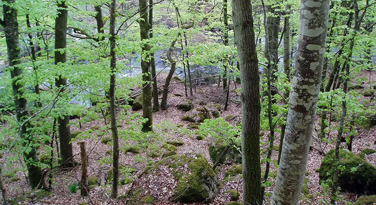Karaktär: Dalgång, ravin, å, ädellövskog och hagmarker