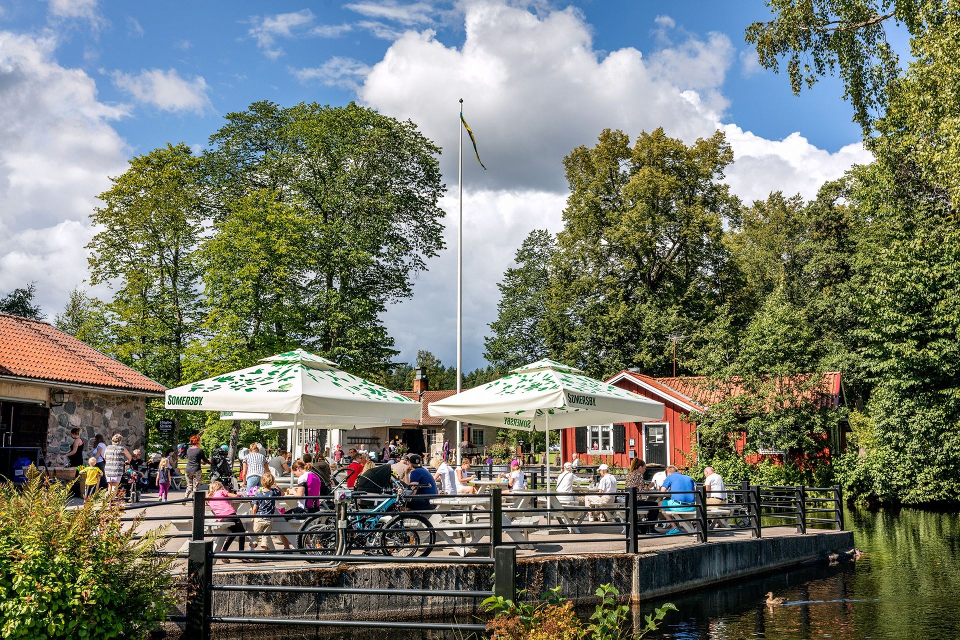 Högbo Qvarn ligger mitt i Högboån i en historisk bruksmiljö. Njut av vällagad mat och goda bakverk inne vid någon av brasorna eller på någon av uteserveringarna vid ån.