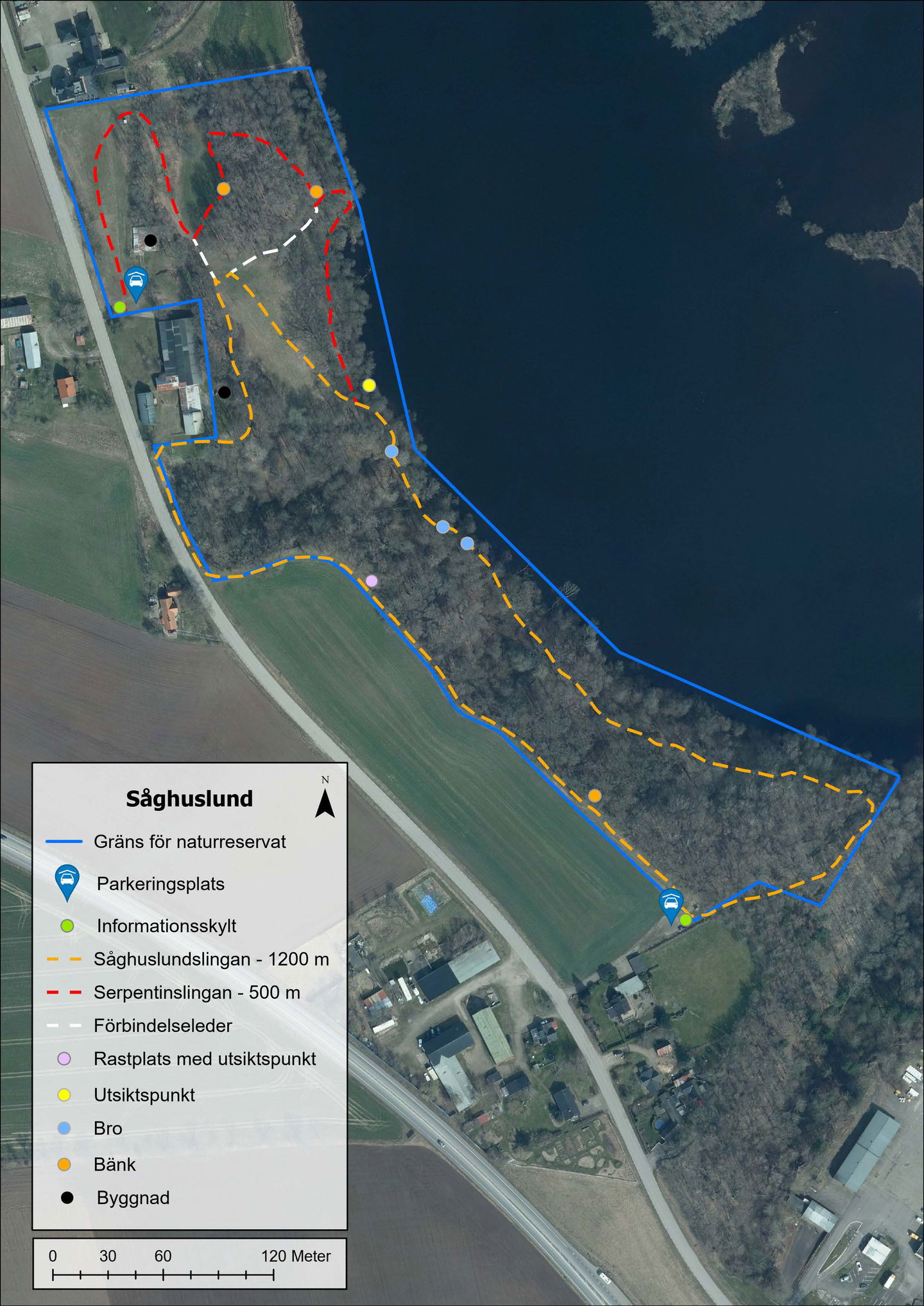 Såghuslundsslinga is a circular trail in beautiful nature. Mixed forest, near Lagan. It is Laholm municipality's only nature reserve that has high forest values.