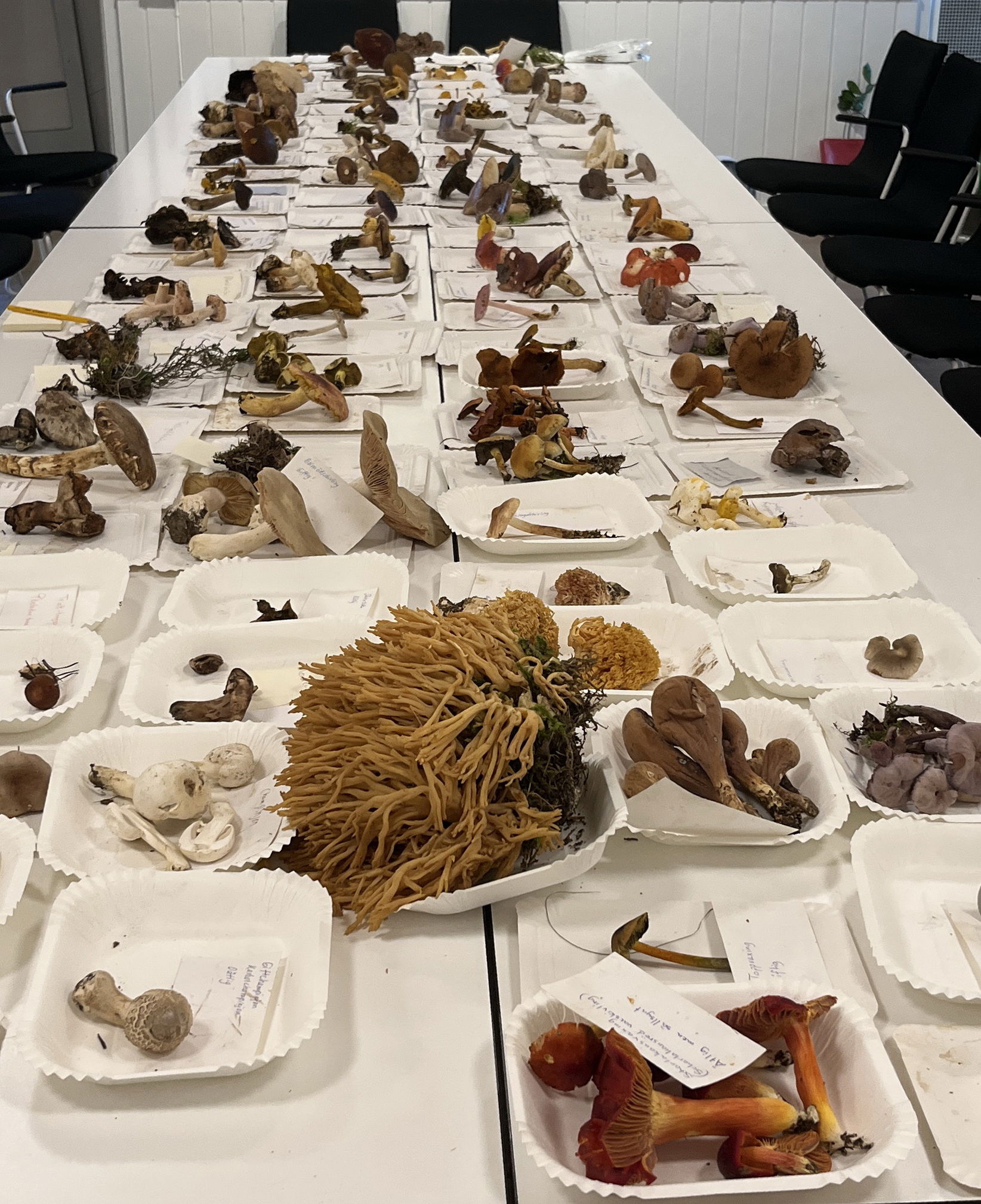 gör också en utställning av de svampar som vi har hittat under veckoslutet. Här