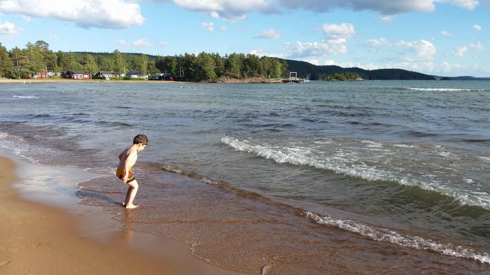 Hargebaden, on the shore of Lake Vättern is a popular familybeach. The beach is very wide and the water not too deep. It fits perfectly to children. There is even a diving platform. Close to the beach you have the opportunity to take a bath in a temperatured pool with a waterslide, in case you don’t like to swim in the lake.