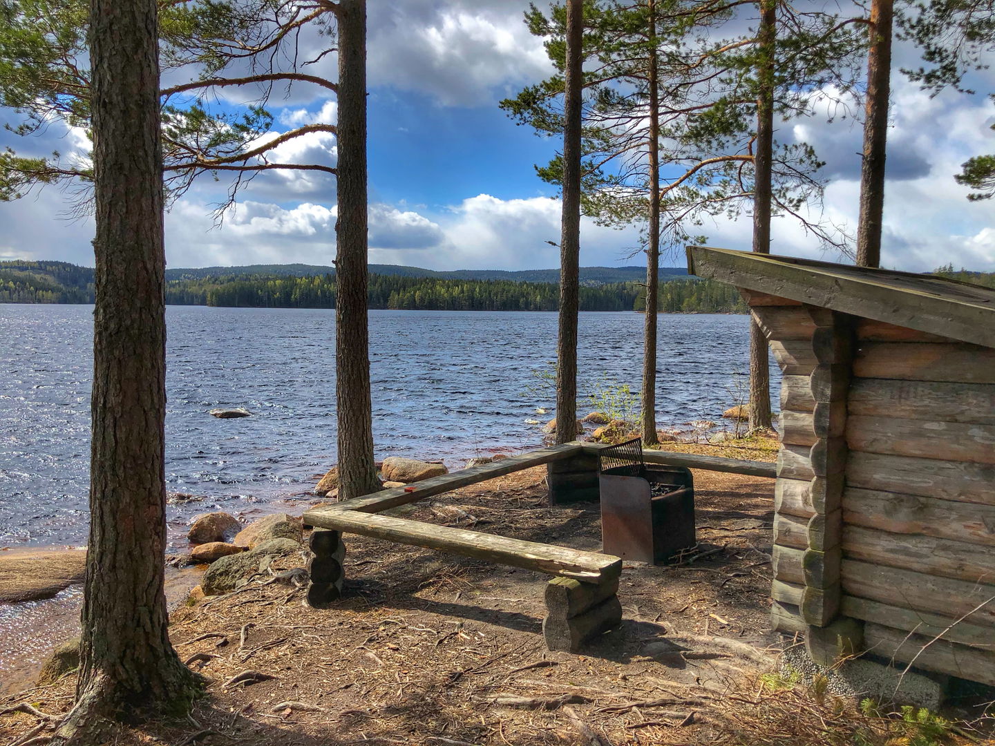Här finns vindskydd med eldplats, ved och dass. Det finns även ett mindre vindskydd vid badplatsen på södra sidan av sjön. Färskvatten finns vid ett av husen bredvid Nybergets vandrarhem.