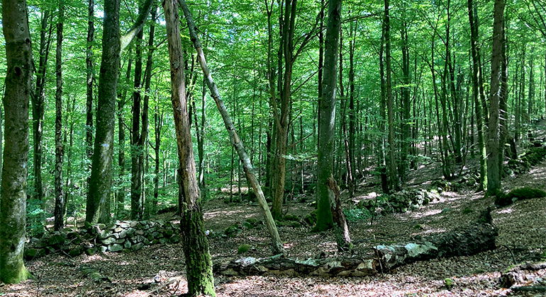 The woodland on the steep slopes has an old-growth character. The humidity is high and fungi, lichens and mosses thrive here. One example includes the rare moss bluish veilwort, which grows on the trunks of broadleaved trees, in dense, damp woodland. The beech woodlands in Näsums Bokskogar are allowed to develop freely – young trees need to get along with old and dead trees.