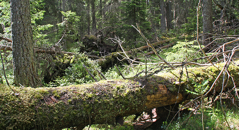 Flerhundraåriga granar och tallar är bevarade i Kvarnbergets naturreservat.