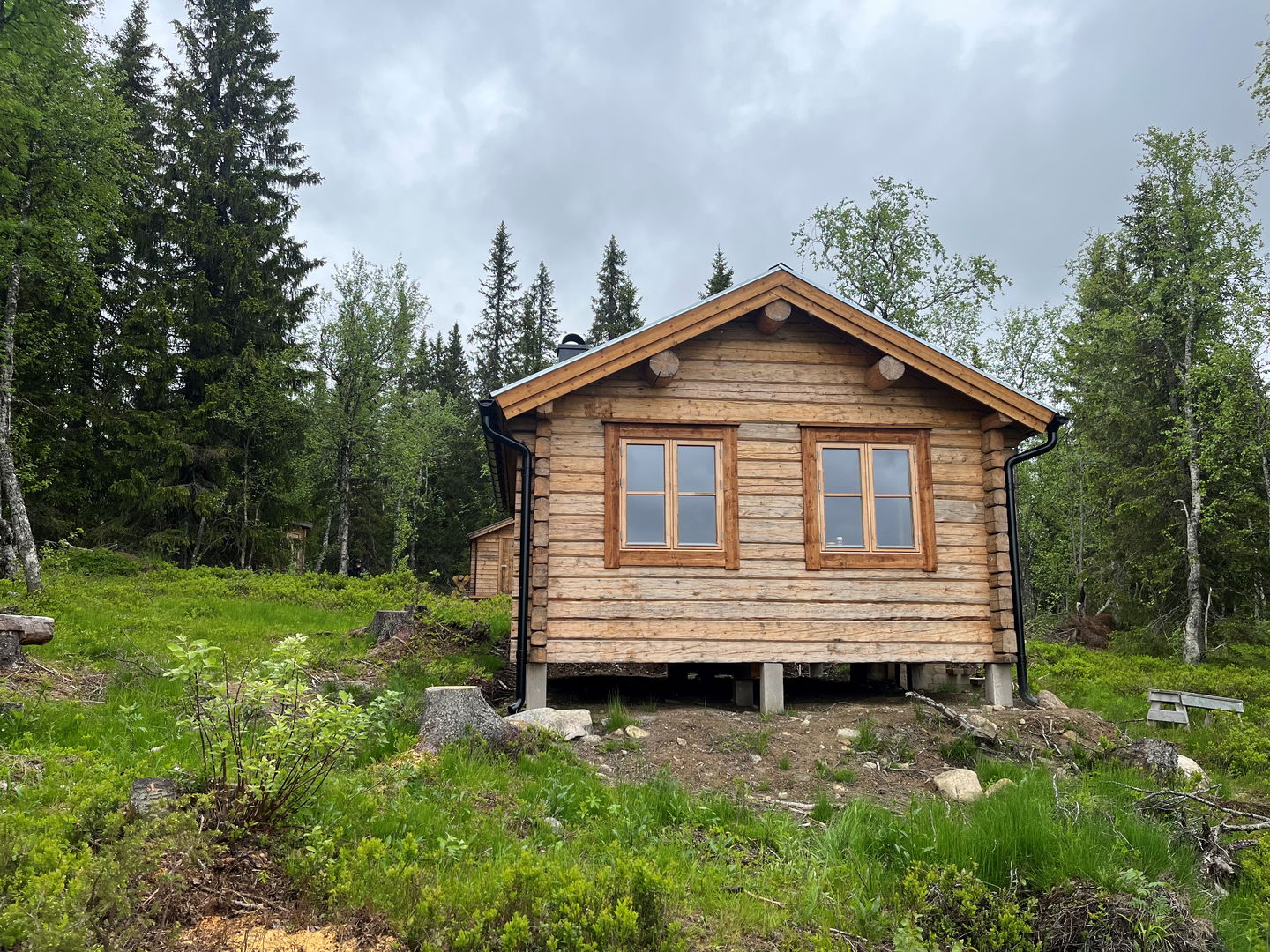I anslutning till kojan finns vedförråd, utedass och en grillplats.