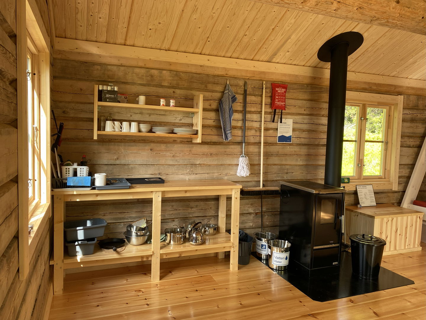 Du som besökare städar efter dig och bär in ved från vedförrådet till nästa gäst. Ved finns som meterved. Glöm inte att splinta stickor som är lätta att göra upp en eld med.
