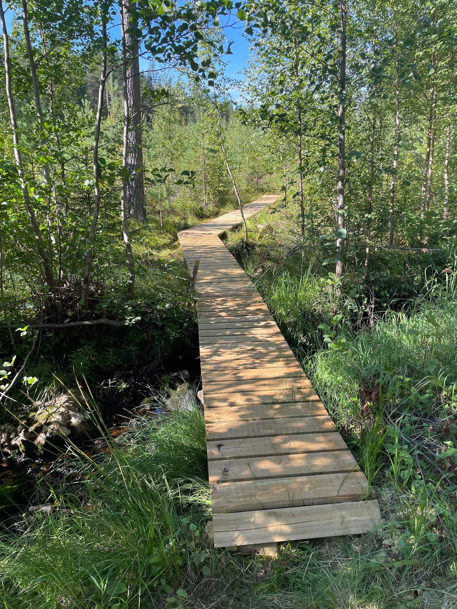 The newly built trail between Rönnåsen and Åmot offers a hilly, wilderness-like stretch through untouched forest. From Åmot, the hike continues through a historic ironworks area, past glistening fishing lakes and a secluded forest cemetery, all the way to Jädraås. The final section back to Rönnåsen leads through classic northern pine forest and across esker ridges – a landscape shaped by time and ice.