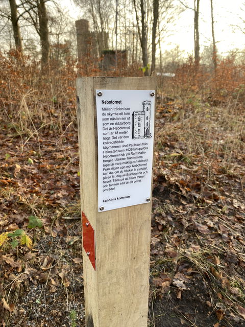 Neboslingan ligger i Veinge, vacket på höjden med det fina 18m höga Nebotornet i anslutning som du kan skymta mellan träden. Tänk på att både tornet och tomten intill är privat område!