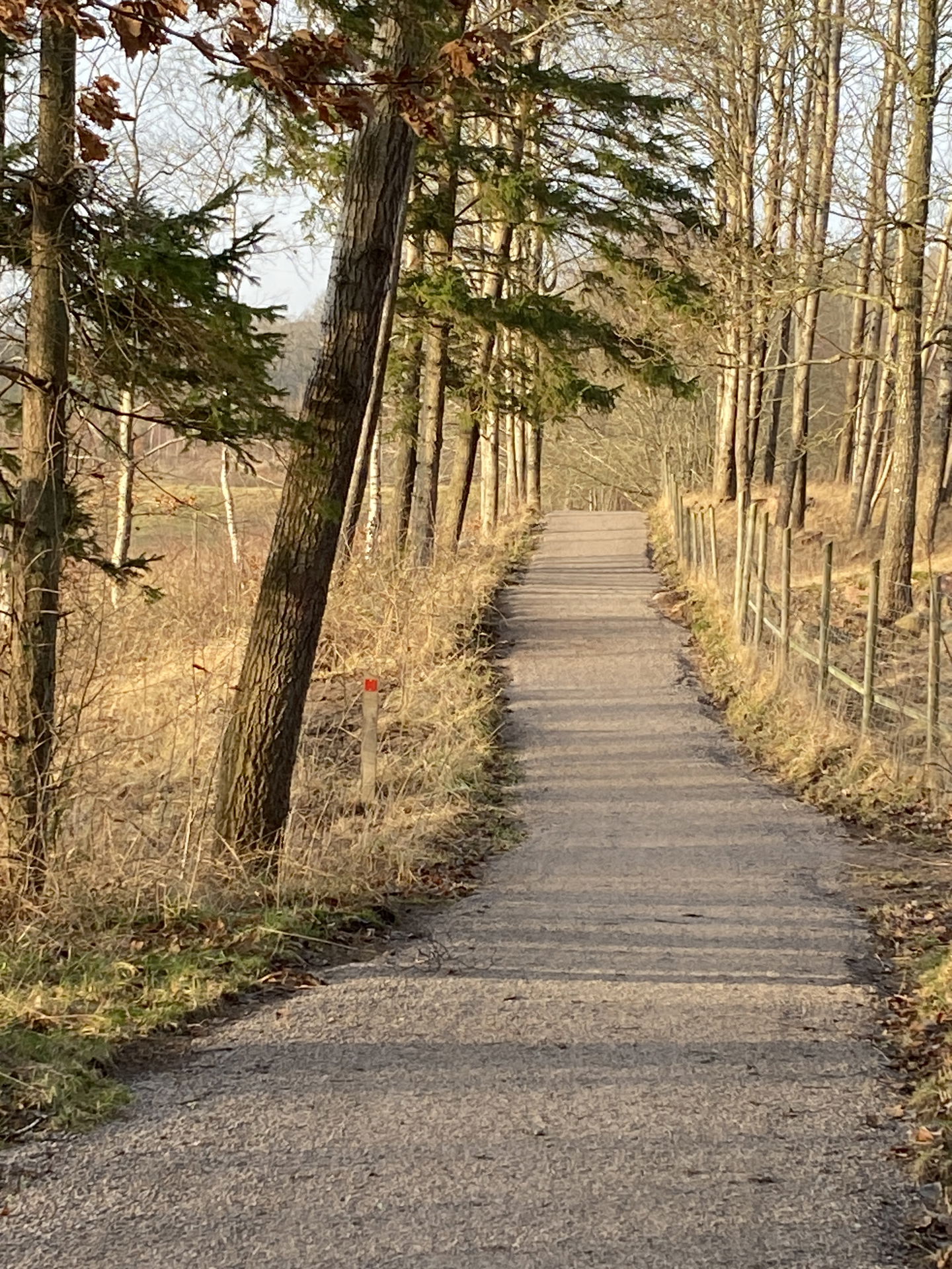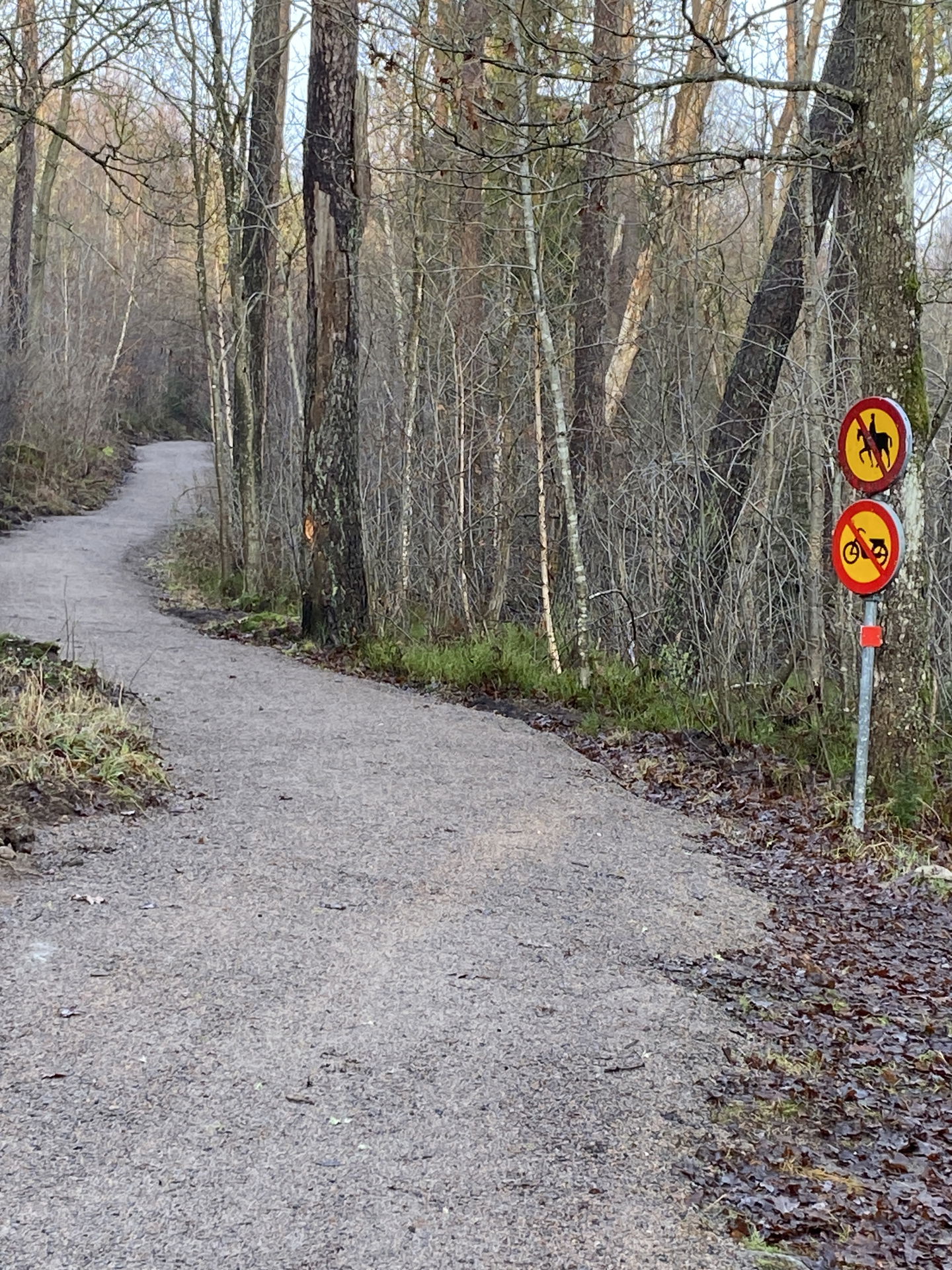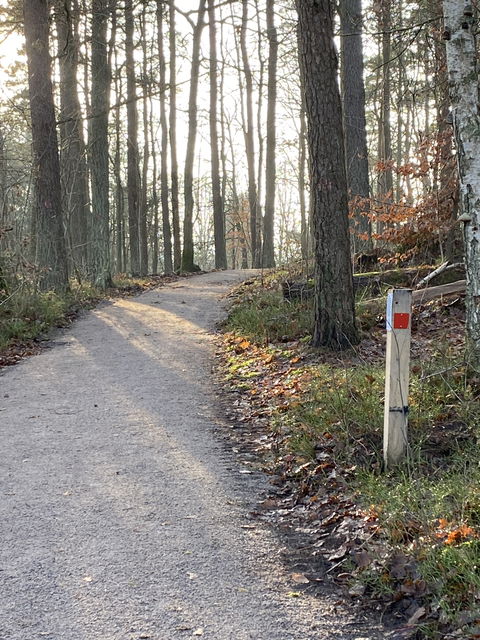 Lätt, kuperad, skogsväg och skogsstig i blandskog.