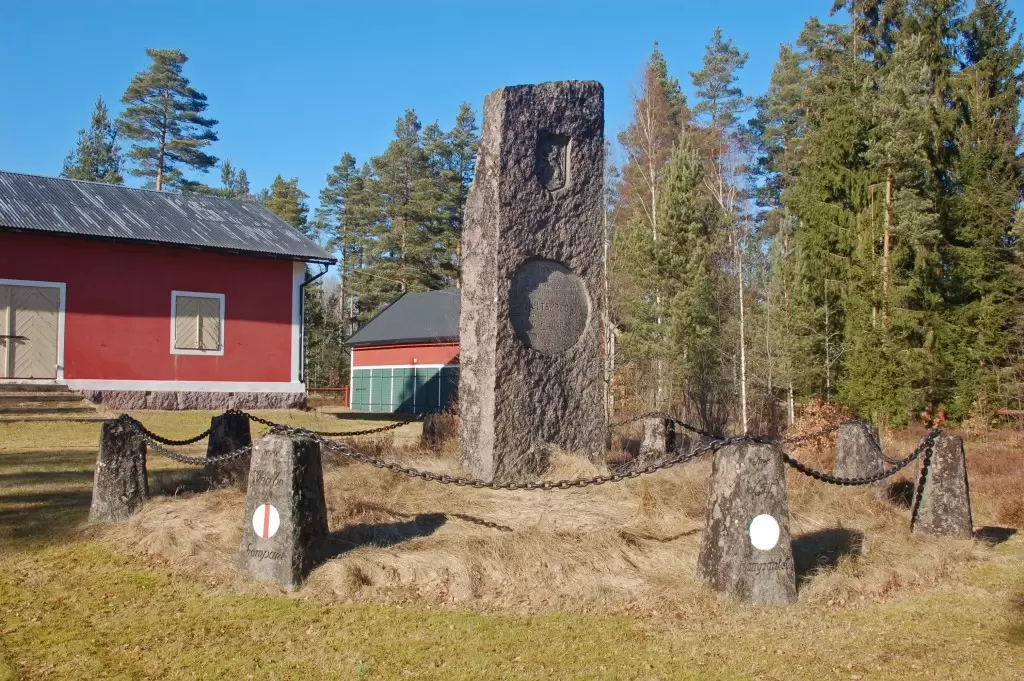 Minnesstenen omgärdas av åtta stenar, en för vart och ett av de ursprungliga kompanierna från ”den indelta tiden”.