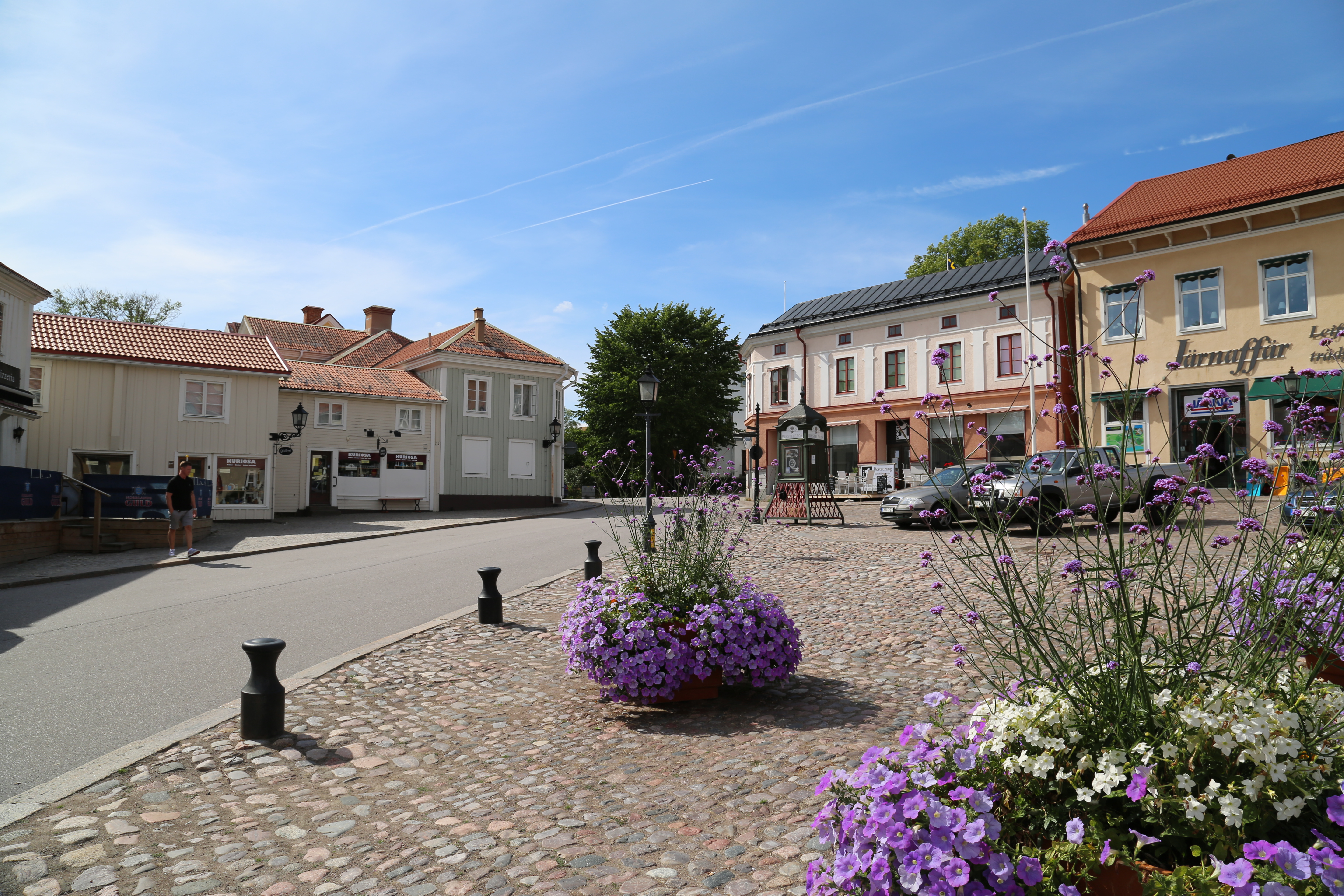 Gamlebys trekantiga gamla torg med kullersten och gatstensbeläggning är ett av få trekantiga torg i Sverige. På torget står också en Pagod telefonkiosk. Den oreglerade och fritt framväxta bebyggelse som trängs runt torget och Gamlebyån återspeglar en situation som sannolikt varit rådande sedan medeltiden.På torget finns bland annat flera matställen som restaurang, pizzeria och byfik och antikbutik samt en järnhandel med stort sortiment.