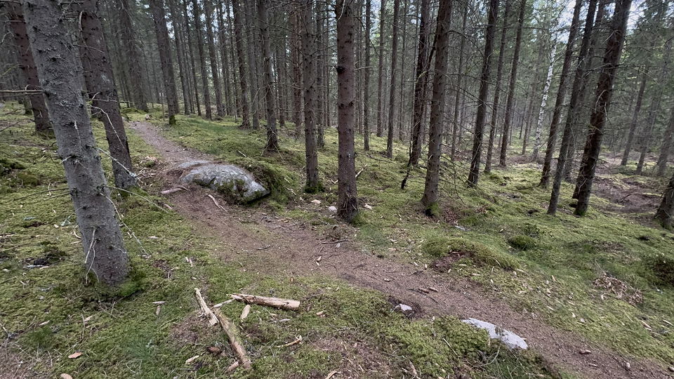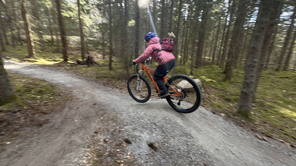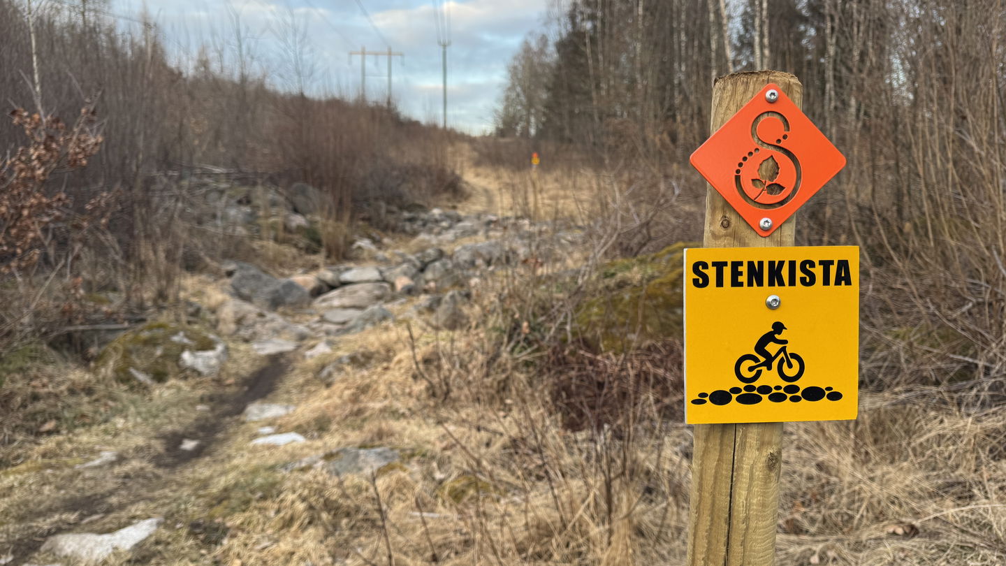 varningsskyltar med reflex för mörkerkörning. MTB stigarna är anlagda av MTB