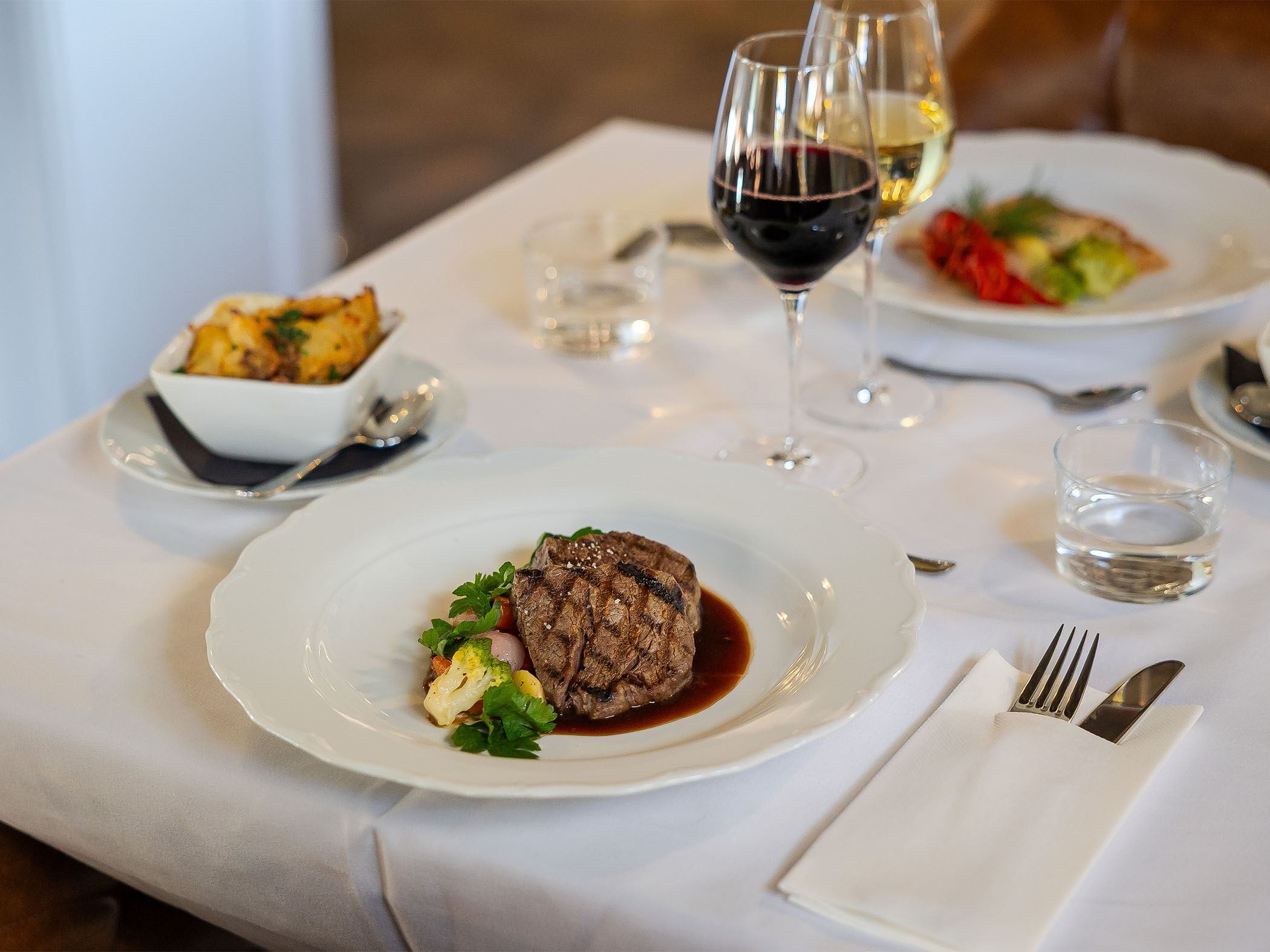 The rooms are located in the main building and in charming wings surrounding the courtyard. They are bright and modernly furnished, with details that reflect the manor’s history. Rooms offer views of the river, the park or the historic workers’ housing. In the dining room, bar and lounges, you can enjoy views over the Dalälven River and the crackling fireplace. The food follows the seasons and is inspired by Swedish ingredients, offering a flavourful and genuine dining experience. At Söderfors Herrgård, you can also unwind in the spa area with warm baths and sauna, or on the floating sauna on the river.