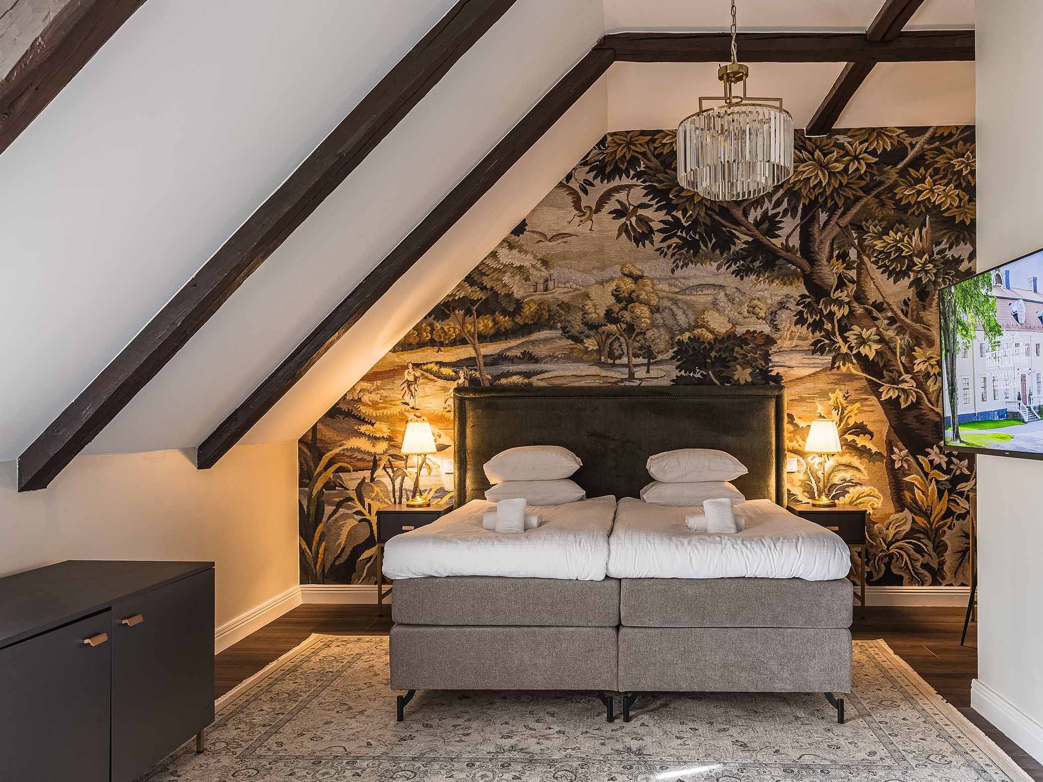 Söderfors Herrgård, recently renovated, was built in the late 17th century, and its buildings, salons and surroundings still bear traces of times gone by. You stay in a peaceful former ironworks community beside the Dalälven River, close to the English park and the well-preserved industrial heritage area with former smiths’ cottages, a church, and historic industrial environments.