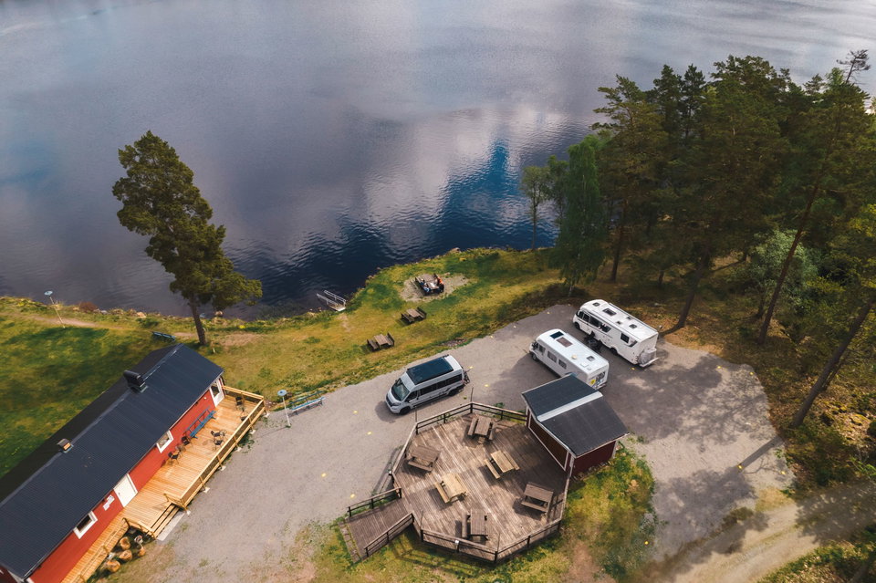 Uvasjön’s campsite offers fishing opportunities, boats for renting and a beautiful beach with jetties and a fireplace. At the campsite is there a service house with showers, WC and emptying of latrine.