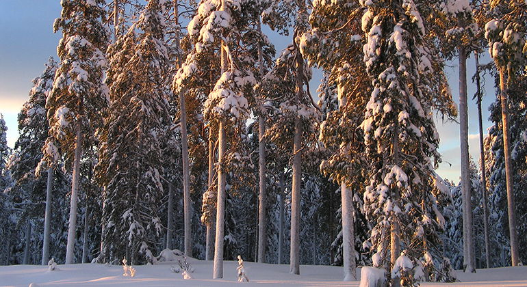 The pine forest in Gärddatjåhkkå is typical for the Lule river valley. The pines are slender and grow densely. Many of the old pines reach higher than 20 m, and you have to lift your gaze to see their gnarled tops. The area is larger than 0.4 square kilometres in size.