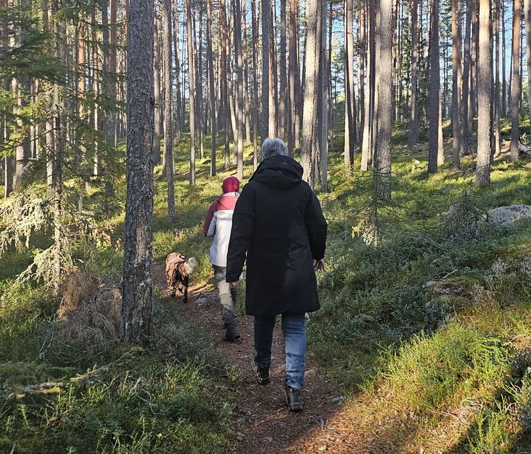 The shortest trail runs around Björntjärnet, 1,8 km. The middle trail around Igeltjärnet is 4,9 km and the longest one around Lidtjärnet is 5,6 km and passes Nordal in the south. These distances are measured from the cabin.