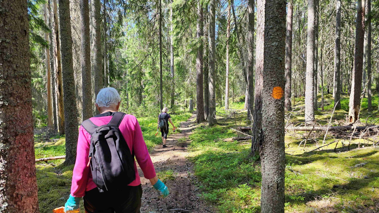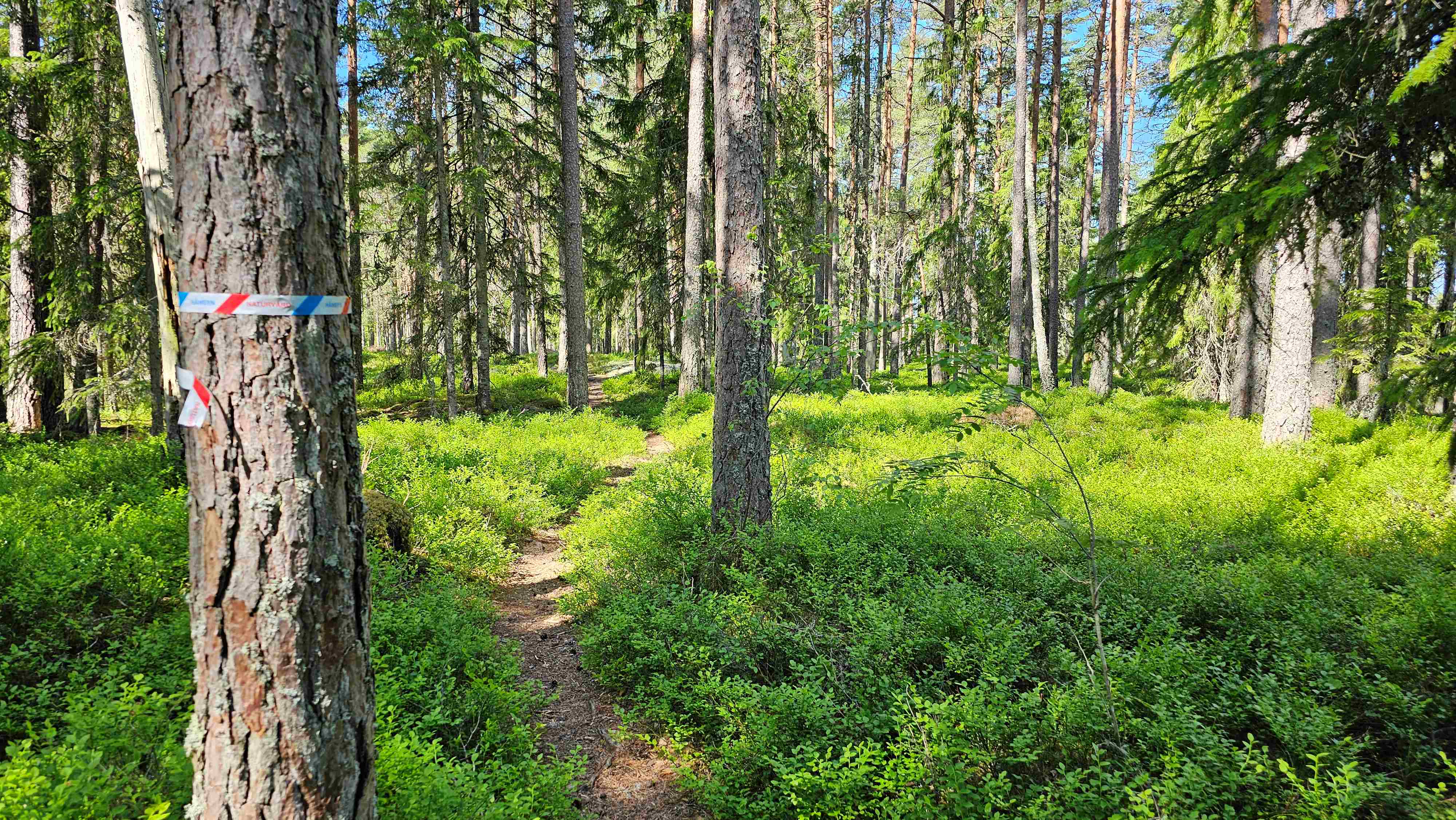 The terrain at Björnmyra is flat and easy to hike in. Often there are wide needle covered paths through pine or mixed forest.