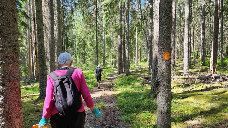 Around the Björnmyra cabin there are circular trail of different lenghts to choose from. The path up to Storkasberget however is an A to B trail, but it is possible to contine on the car access road if you with to make a circular route. Please note that only the forest path to the top will have colour markings.