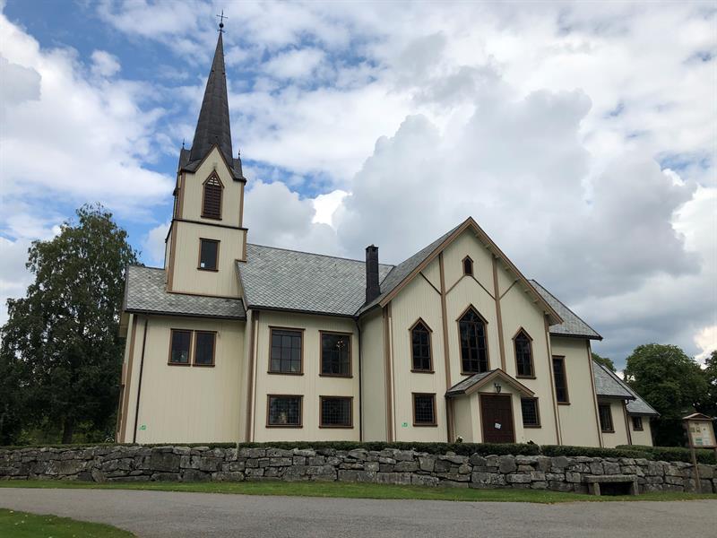 Timber church constructed in 1877 - 78 according to a draft by then mayor A.C. Furuholmen. The main part of the altarpiece is an oil-painting on canvas (1907) by Augene Eiebakke. Some items from the earlier church remain.