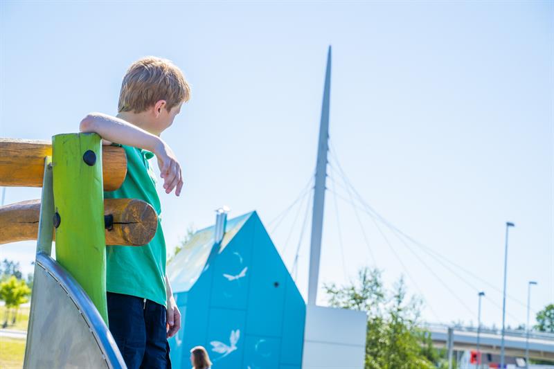Next to the bridge you will find a pleasant rest area with a playground for the children, picnic benches and toilets.