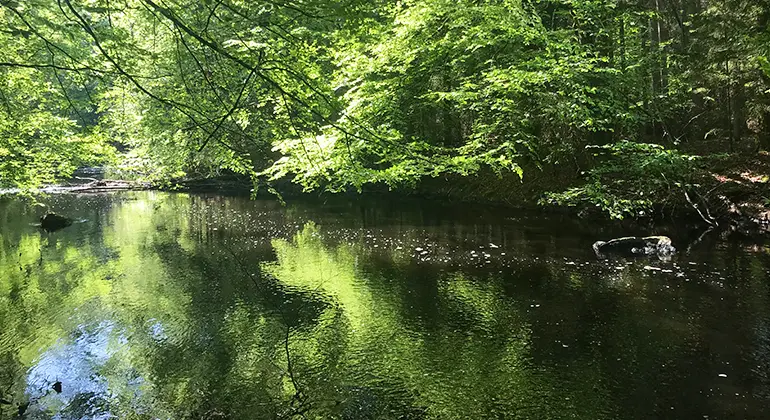 I norra delen av reservatet är Nättrabyån lugnflytande med stora mader som man historiskt slagit för att ta tillvara det näringsrika höet. Längre söderut blir ån mer forsande och blockrik med mindre kvillområden. Norr om kraftverket kan man hitta den rödlistade hårklomossan på block och trädrötter. Söder om kraftverket påverkas ån av reglering och har inga naturliga vattenståndsvariationer. Den vackra och sällsynta ormbunken safsa växer rikligt i åns mer strömmande partier. Har du tur kan du få se såväl strömstare som forsärla söka godsaker i eller i anslutning till ån.