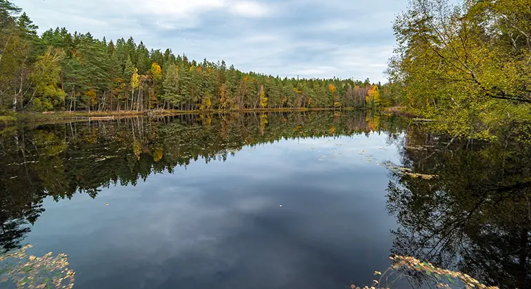 Karaktär: Barrnaturskog, sjö, fågelskyddsområde