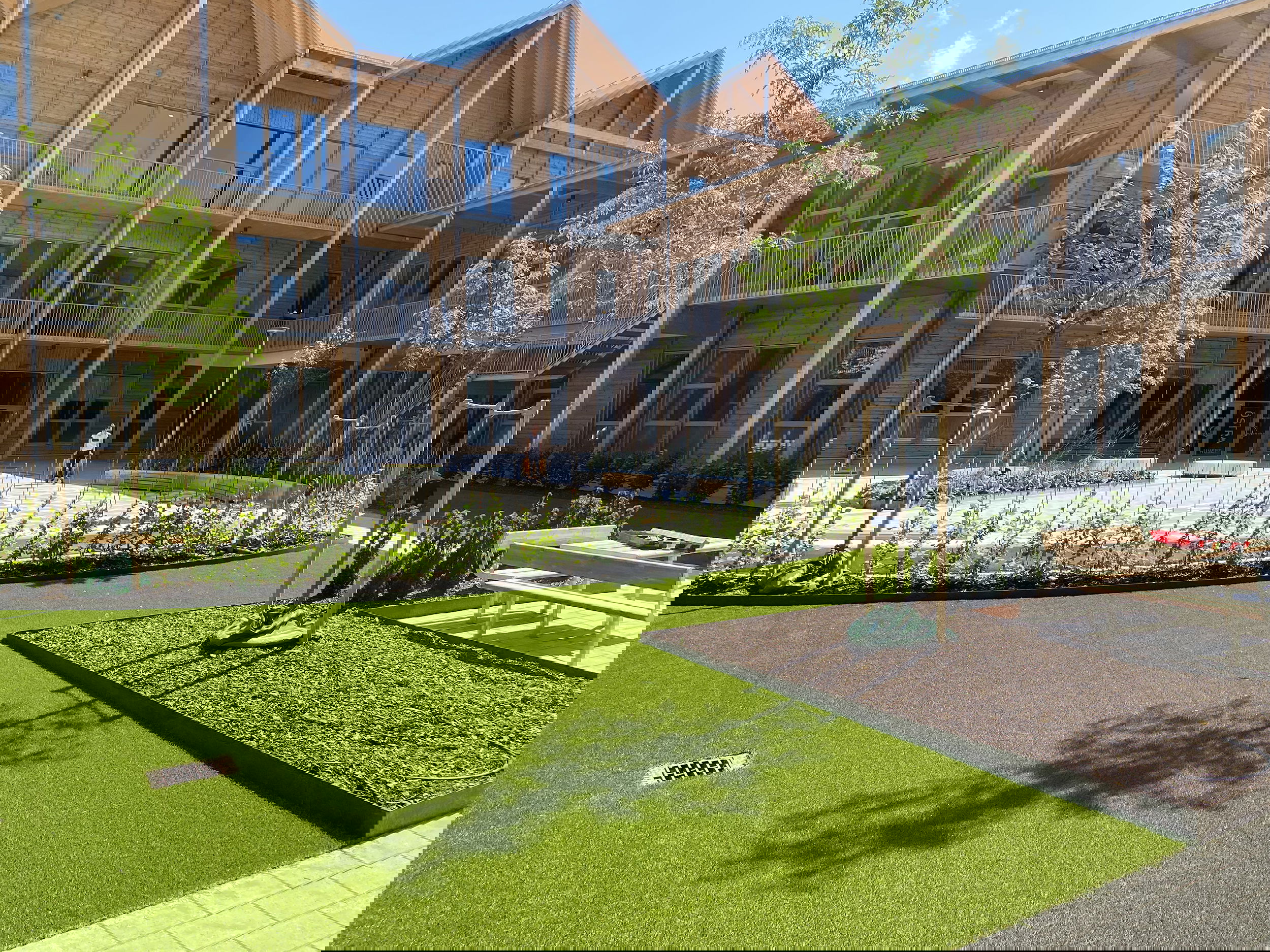 Fyra av husen bildar en innegård och träkänslan är en röd tråd vilket märks både inne samt i fasaden av limträ. Minnebergsskolan är vinnare av Grundstenen 2021 och blev nominerad som enda svenska finalist till EU-priset New European Bauhaus.