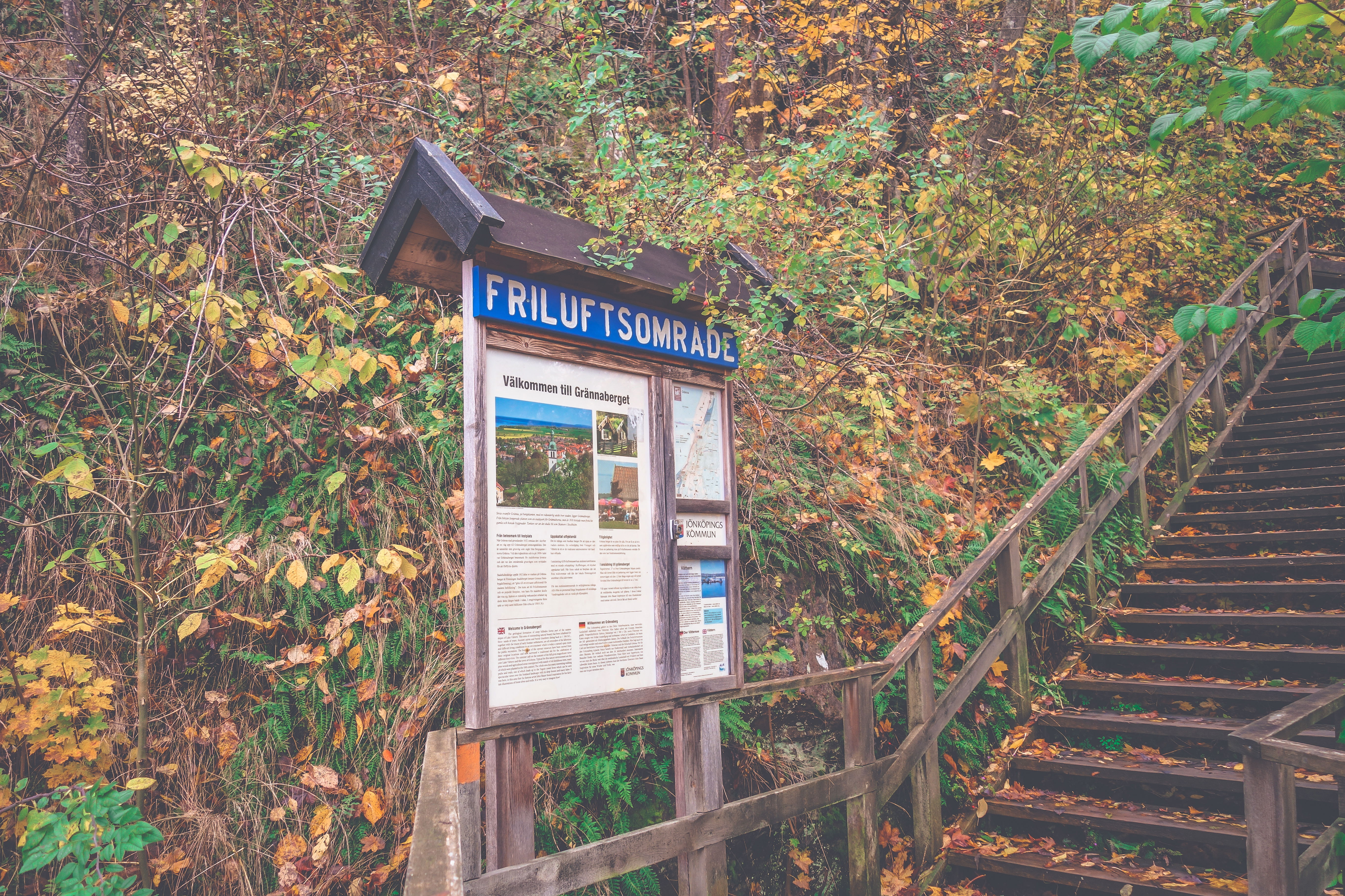 Trapporna från södra delen av Bergsgatan i Gränna är den smidigaste vägen upp till Grännaberget. Det är ungefär trehundrafemtio trappsteg upp till Friluftsmuséet, Kaffestugan och stigarna som tar dig vidare till grillplatser, och GBOK-stugan med utegym och cykelarena.
