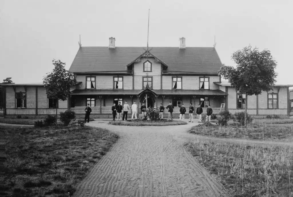 Byggnaden – även kallad underofficerskasernen – uppfördes på 1840-talet i två och en halv våningar. Femtio år senare tillkom två enplans flyglar. Tyvärr finns ingen beskrivning av husets interiör men den var säkert spartansk. Byggnaden var gråbrun och mätte 35 x 10 meter. Jämte matsal och kök rymde den ett stort antal sovrum.