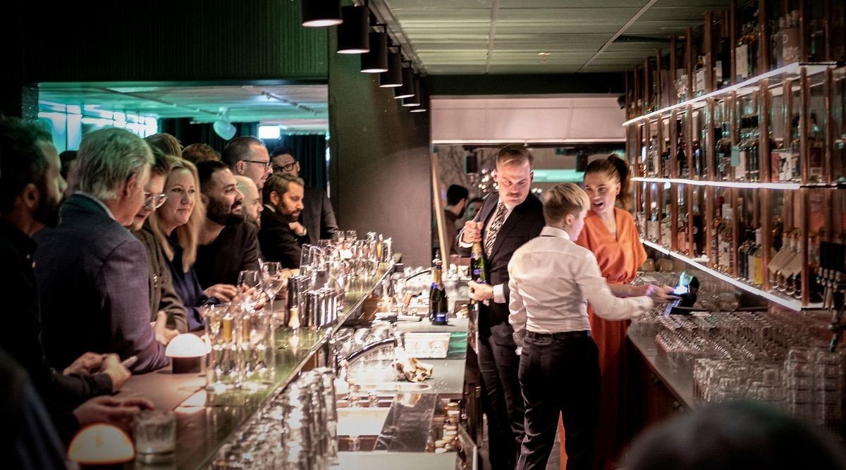 A cocktail bar and event floor at Rådhustorget. Drinks and food are served here with Swedish ingredients and with an interior that is designed and manufactured in Sweden.