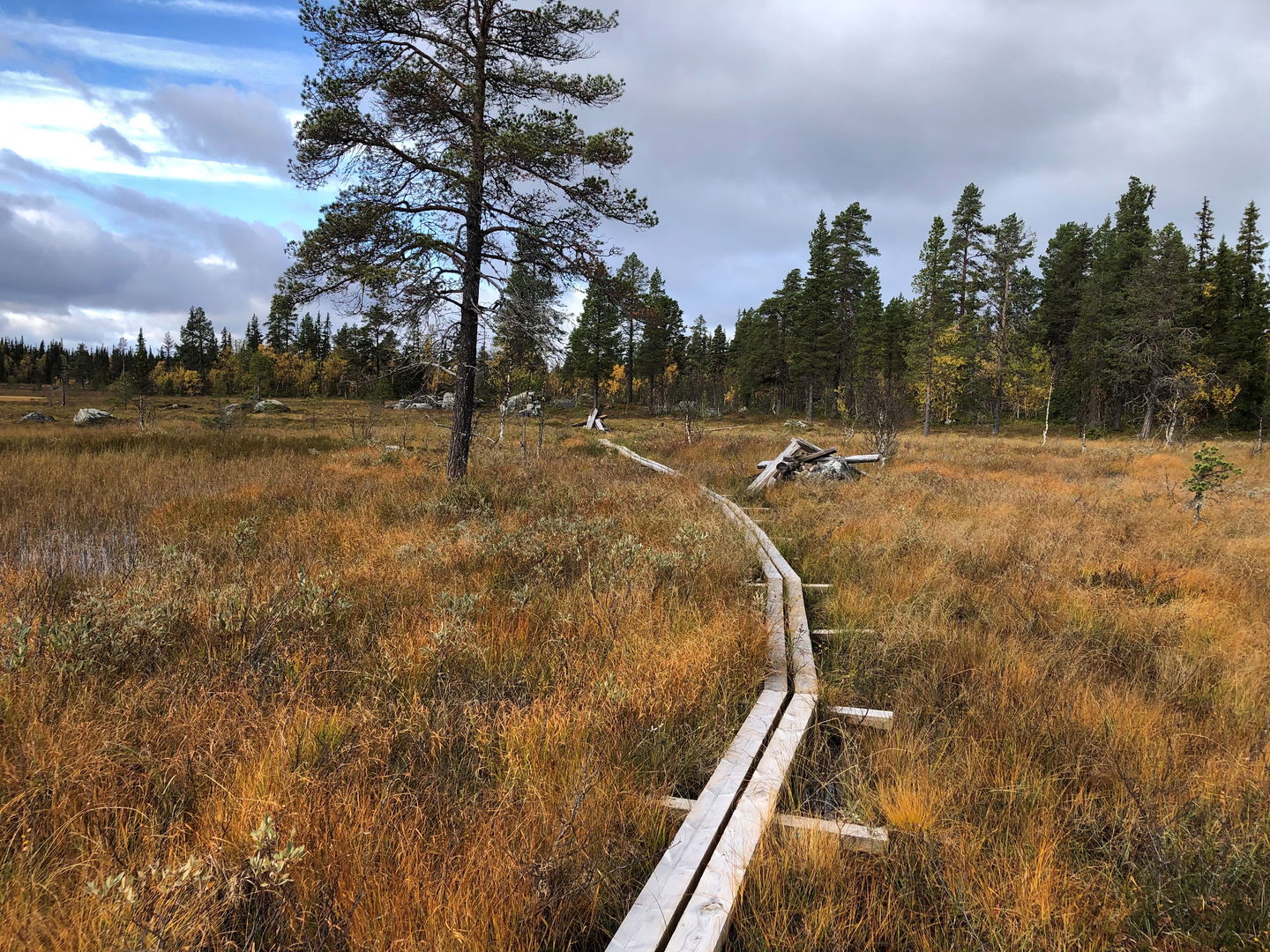 En trevlig ganska lättvandrad led på cirka 1,6 km. Omgiven av myrar, gamla tallar och bäckar. Stor del av myrarna är spångade och vid Långvikstjärn finns det en rastkoja.