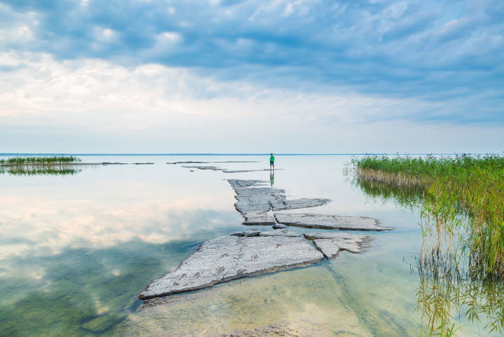 Shallow sandy beach with beautiful views of Lake Vänern
