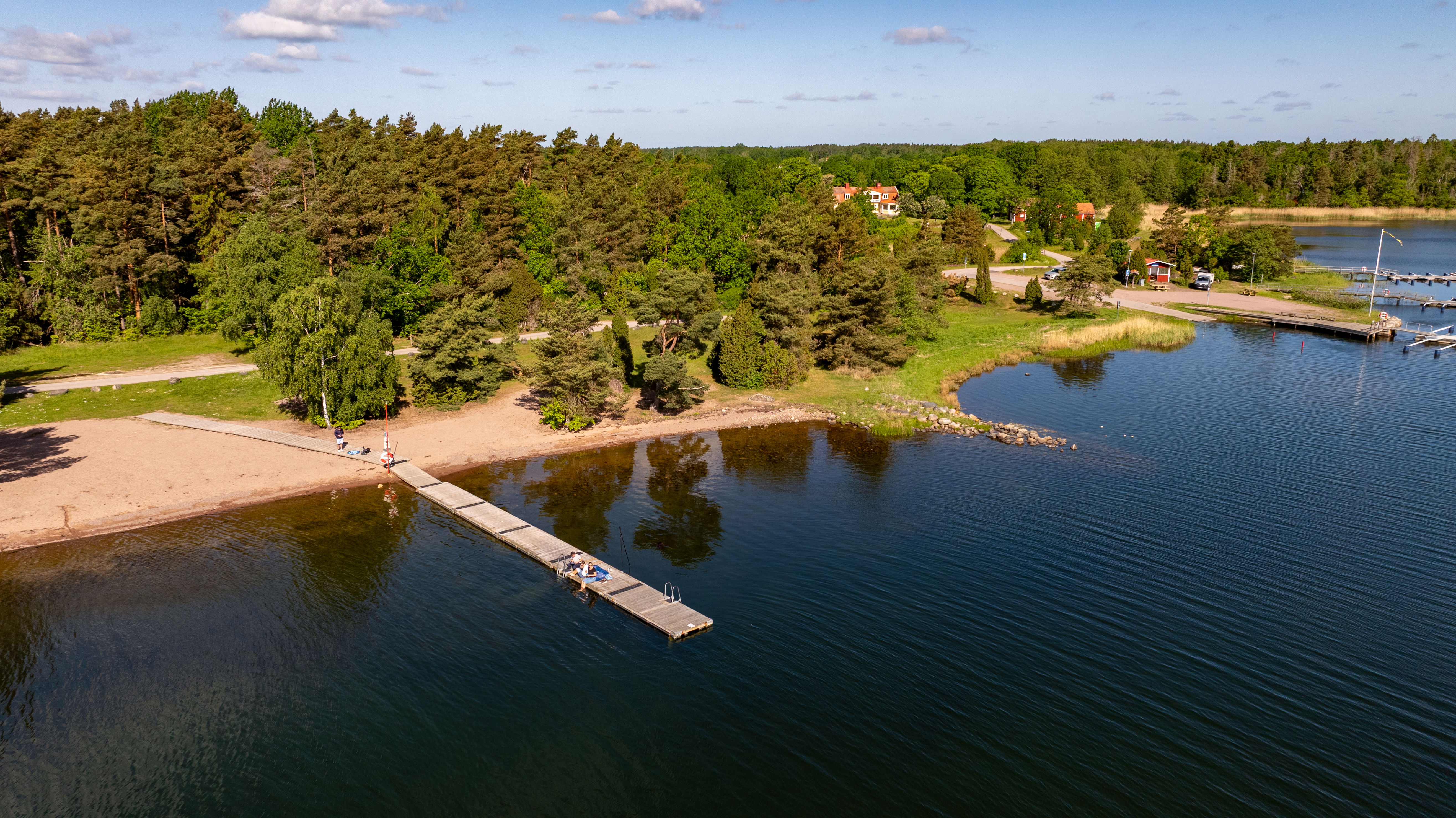 Det finns gott om parkering. Sommartid finns toalett vid badstranden.