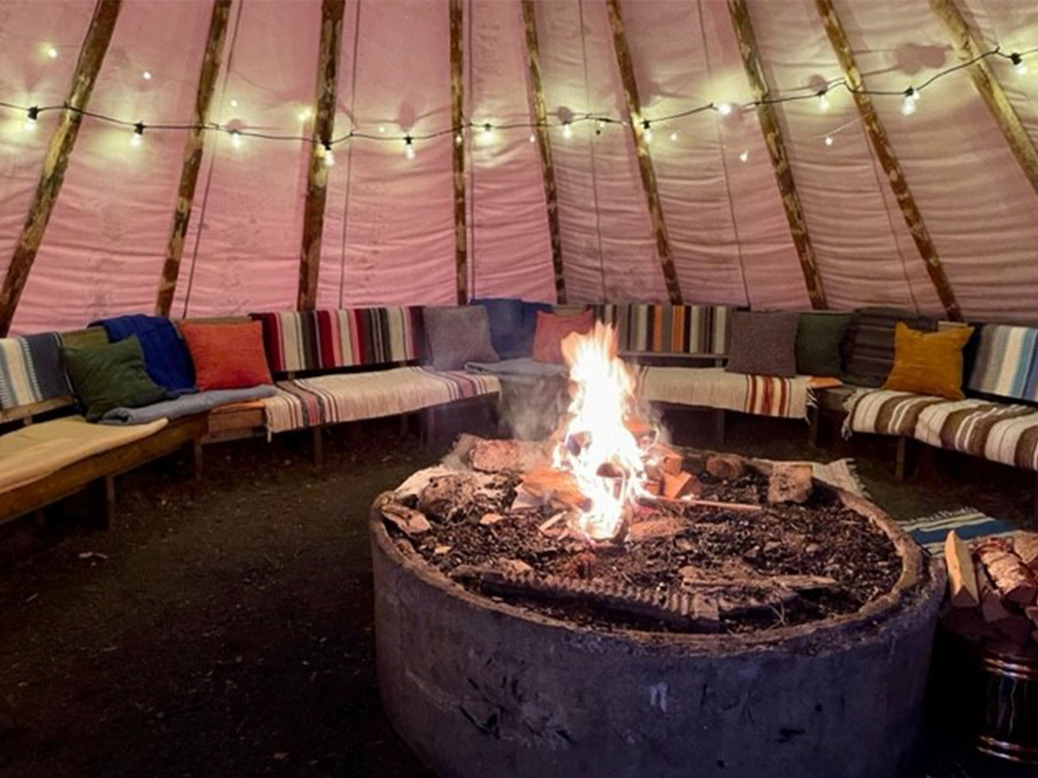 In front of the hotel, there’s also a large Lavvu (Sámi-style tipi tent) with space for 25 people, which guests can rent for gatherings or events.