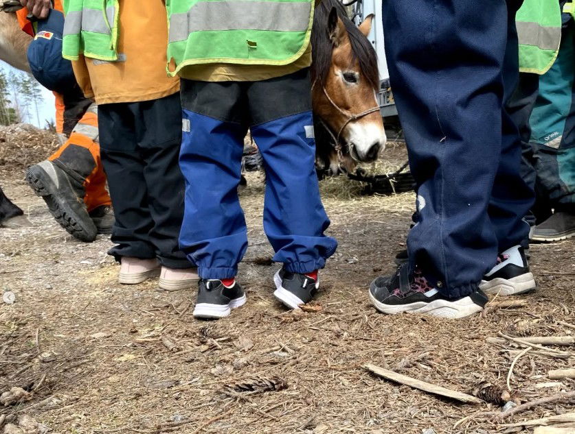 prova på roliga aktiviteter runt elden, se hur skogsarbete med häst går till
