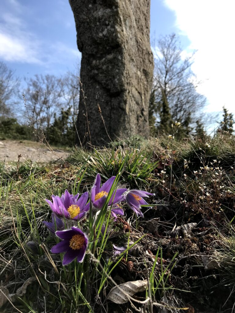 för att på plats räkna backsippebeståndet i syfte att dokumentera om beståndet