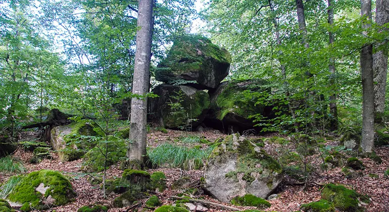 Längs Tattån i öster reser sig höga, storblockiga sluttningar med urskogsartad ädellövskog. En lång rad kulturlämningar som vittnar om forna tiders markanvändning finns i reservatet.