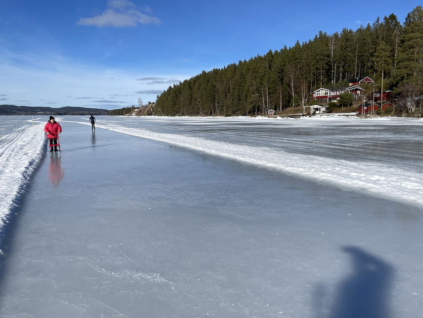 Väsman is a large lake with varying nature. Closest to the starting point from Ludvika's marina you reach Bärholmarna, here a smaller circular track of about 1 km is usually ploughed. The courses are ploughed at a reasonable distance to the beach and offer nice views of permanent buildings, holiday homes and village environments. The association Väsman VinterArena takes care of the ploughing of the tracks, which are easily accessible as there are many starting places with good parking facilities. In addition to skating, Väsman's rinks are also suitable for a walk or kick sledding. Kick sleds are available to borrow.
