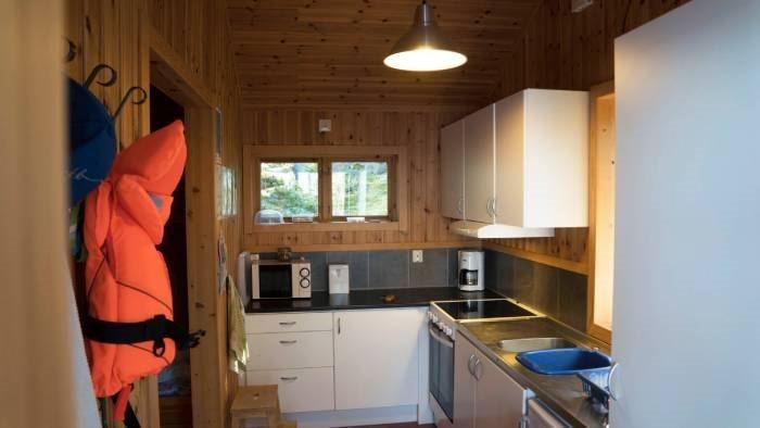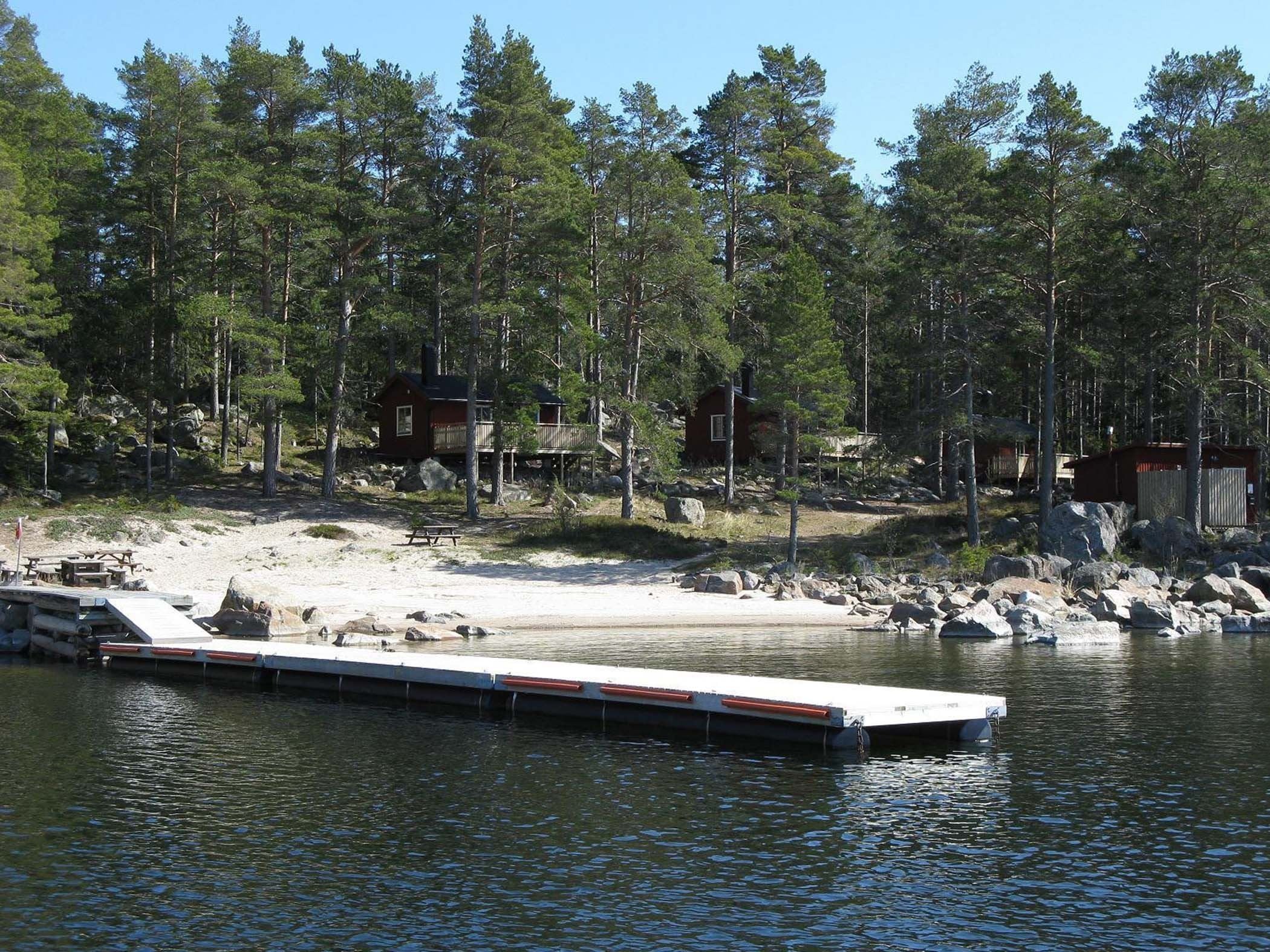 The three cabins are located on the western side of the island, next to a small sandy beach. Each cabin accommodates six people, with two bunk beds and two pull-out beds. The cabins are equipped with electricity and a simple kitchen featuring a stove, oven, microwave, kettle, and coffee maker.