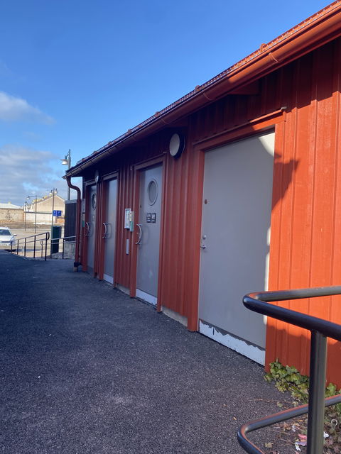 En offentlig toalett i hörnet mellan Slottsgatan och Södra Långgatan. Bakom gamla stationshuset.