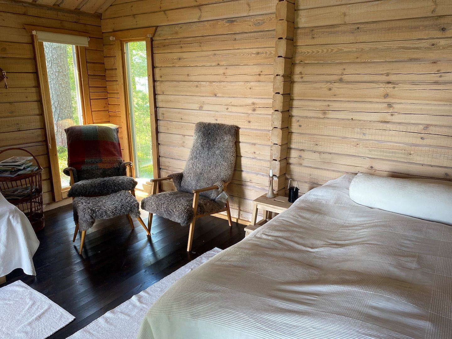 Nätsjö Udde has become a meeting place for those who want to stay in a context where nature takes center stage. Go trail hiking or get a bit lost with a knowledgeable guide who will get you back safely. Learn to navigate by map and compass and improve your ability to read the nature. Be as sociable as you like and choose anything from complete privacy to small talk and storytelling by the fire or in the sauna. Sit and measure your perch in the boat, and learn how to clean and prepare your fresh-caught fish for dinner. Go canoeing and explore the bays with their large boulders and cliffs on the waterline. Test your balance on a modern SUP board and fall into the crystal clear waters that often reach pleasant temperatures inside the bay. Conclude your day with a sauna before retiring to your private log cabin, where you crawl into the comfortable, made-up beds for a good night's sleep.