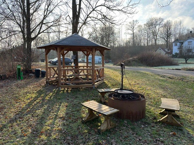 Vid Byastugan finns även toalett, cykelställ, vindskydd i form av en paviljong, bänkbord och servicestolpe med bland annat cykelpump.