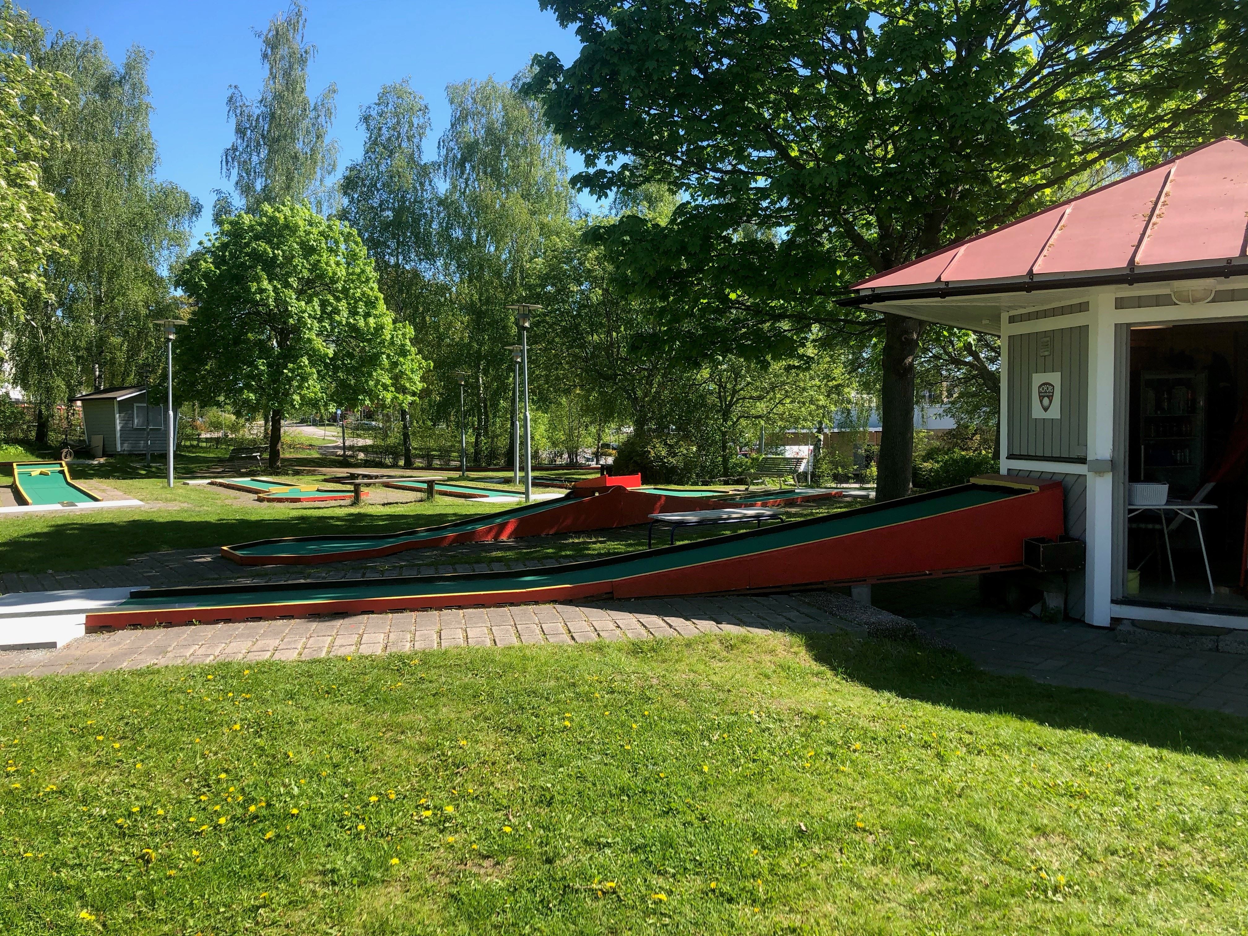 I skön parkmiljö alldeles intill Hofors centrum kan du och dina vänner spela bangolf på helt nyrustade banor.