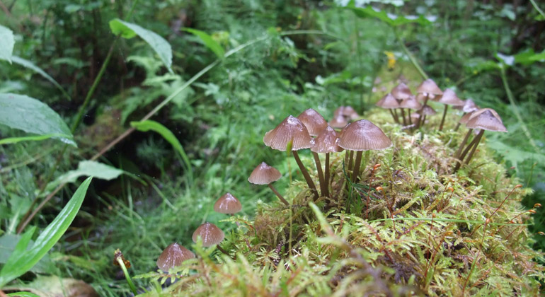 Här kan du hitta ormbunkar och den högväxta fjälltoltan, men också den lilla orkidén spindelblomster och andra späda örter. De fallna trädstammarna är ofta övervuxna av mossor och lavar och i de murkna träden lever många insekter.