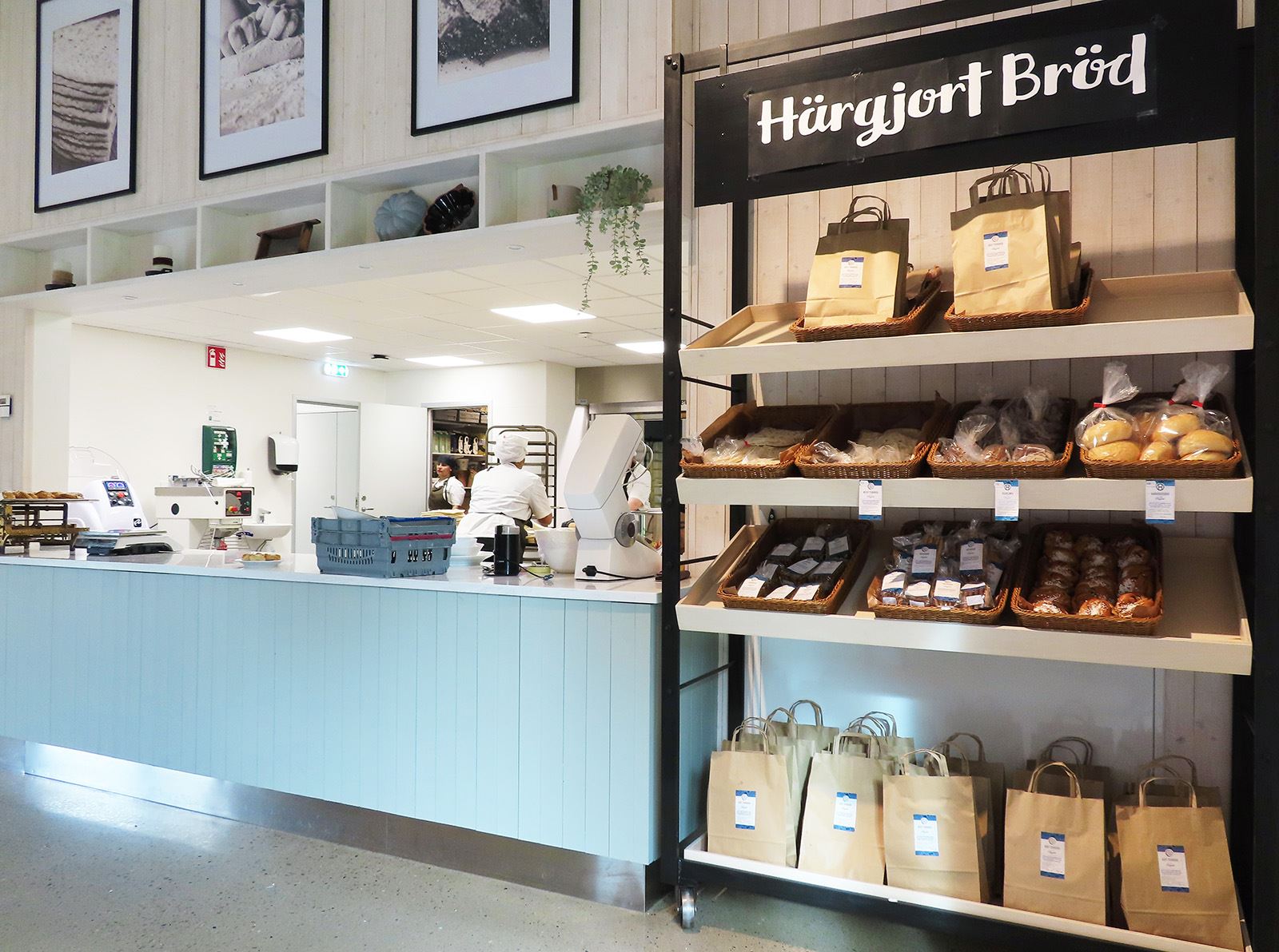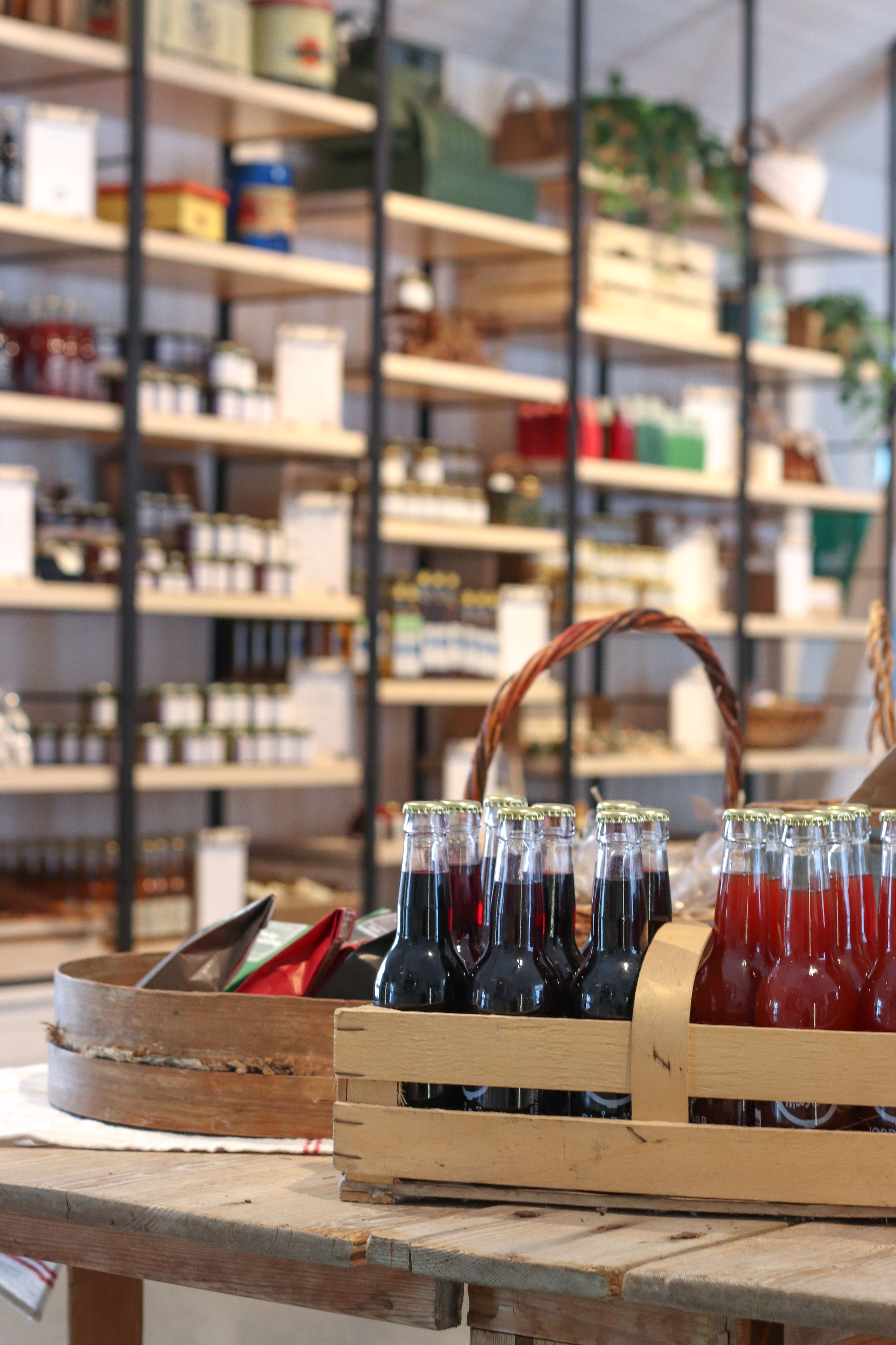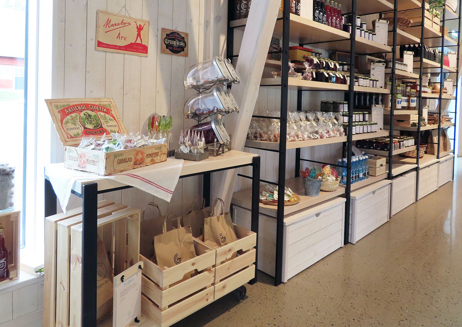 I samma byggnad finns ysteri, bageri och charkuteri. Kika gärna in genom de stora fönstren så kan du se hur produktionen går till.