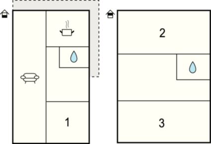 Totalt sex sängplatser varav två dubbelsängar och två enkelsängar.