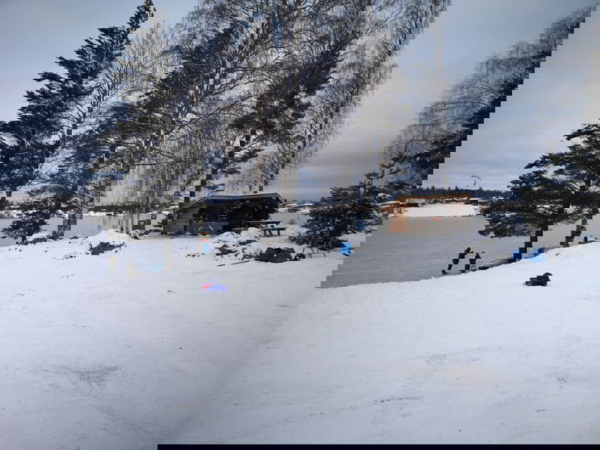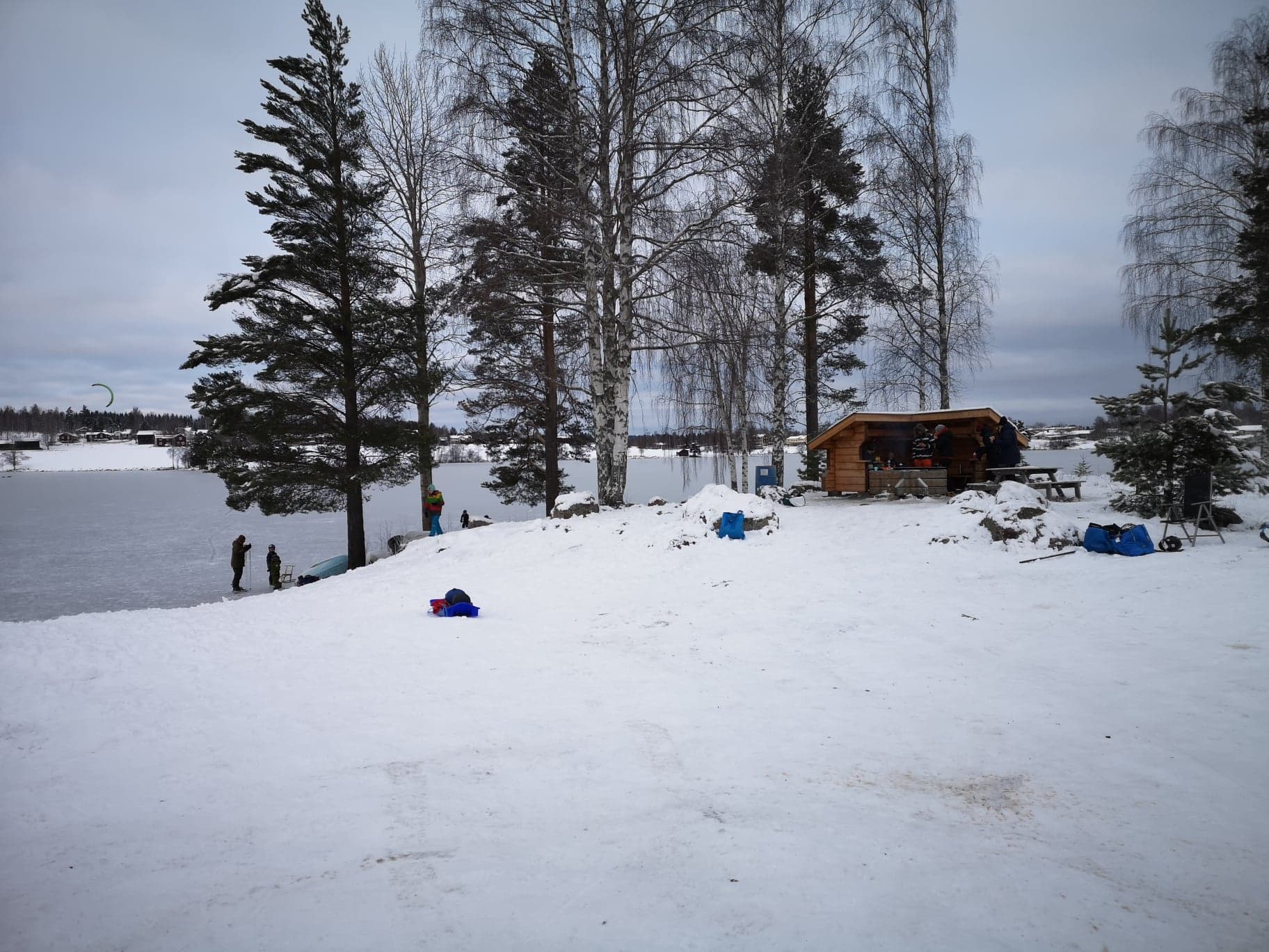 Vindskydd med grillplats vid Klacks badplats inne på Delsbo Camping.