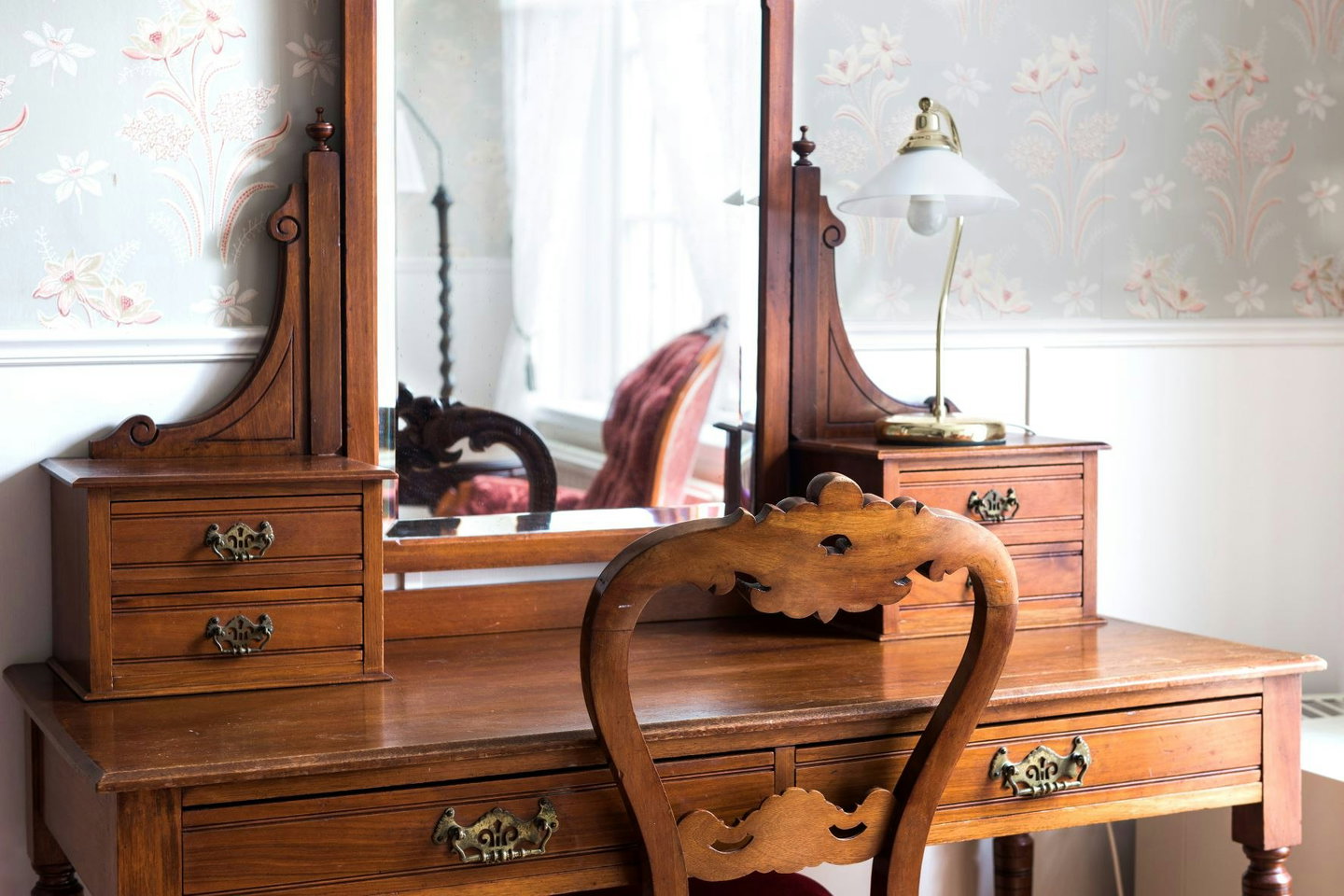 Varje rum är unikt, personligt och mysigt med varma och glada tapeter, och vackra möbler från lokala hantverkare och auktioner runt om på ön.