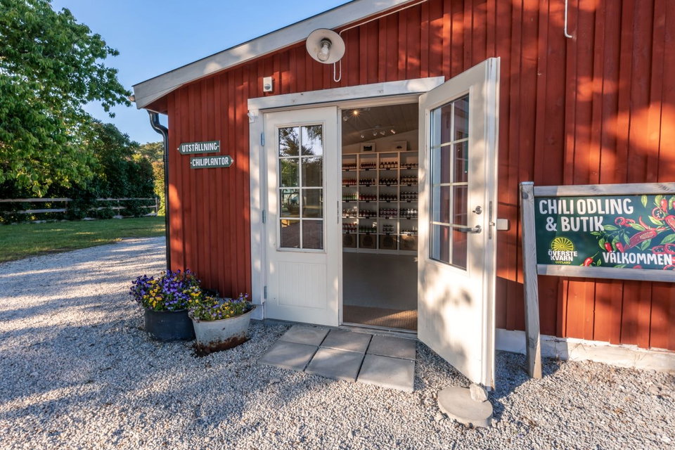 Vi är ett familjeföretag som började odla på gården 2012. Ett av våra mål var att skapa nya innovativa smakupplevelser och samtidigt bevara de traditioner kring frukter och bär som präglat så mycket av det genuina Gotland. I de produkter vi erbjuder ligger mycket själ och hjärta. Det mesta odlas enligt konstens alla regler här på vår ö, och oavsett om det gäller vår heta chili eller den genuina karaktären på vår senap, så handlar det om äkta råvaror som håller hög kvalitet. Det är ett signum för Överstekvarn och den tradition som vi står för. Så varmt välkomna till oss och vår gård och gårdsbutik i Lummelunda, en av Europas nordligaste chiliodlingar. Det finns mycket att se i våra växthus, där vi odlar all den chili vi sedan förädlar, och vår chiliutställning, där vi varje år förnyar oss med nya plantor, ofta i olika teman. Besöket kan med fördel avslutas i vår gårdsbutik som förutom våra egna lokalproducerade produkter även inrymmer andra gotländska producenters produkter, inredningsartiklar, lammskinn och mycket annat. Salmbärssylt är en gotländsk specialitet, och här kan vi stoltsera med att vi är världens största salmbärssylts producent.